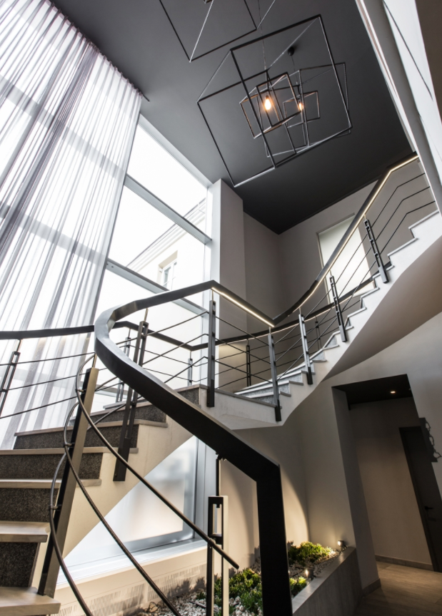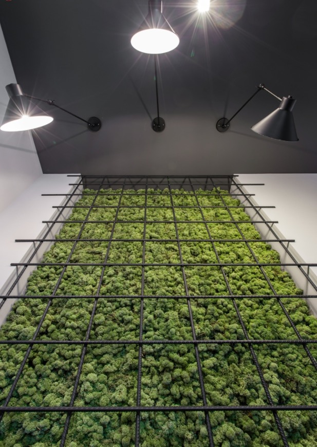 Modernaus ir šiuolaikiško interjero atidengtos plytų sienos byloja apie pastato istoriją. Interjeras sujungia kontrastuojančias medžiagas . Betonas, armatūra, metalas puikiai dera su natūraliu medžiu, minkštais audiniais (veltiniu) ir natūralia žaluma.