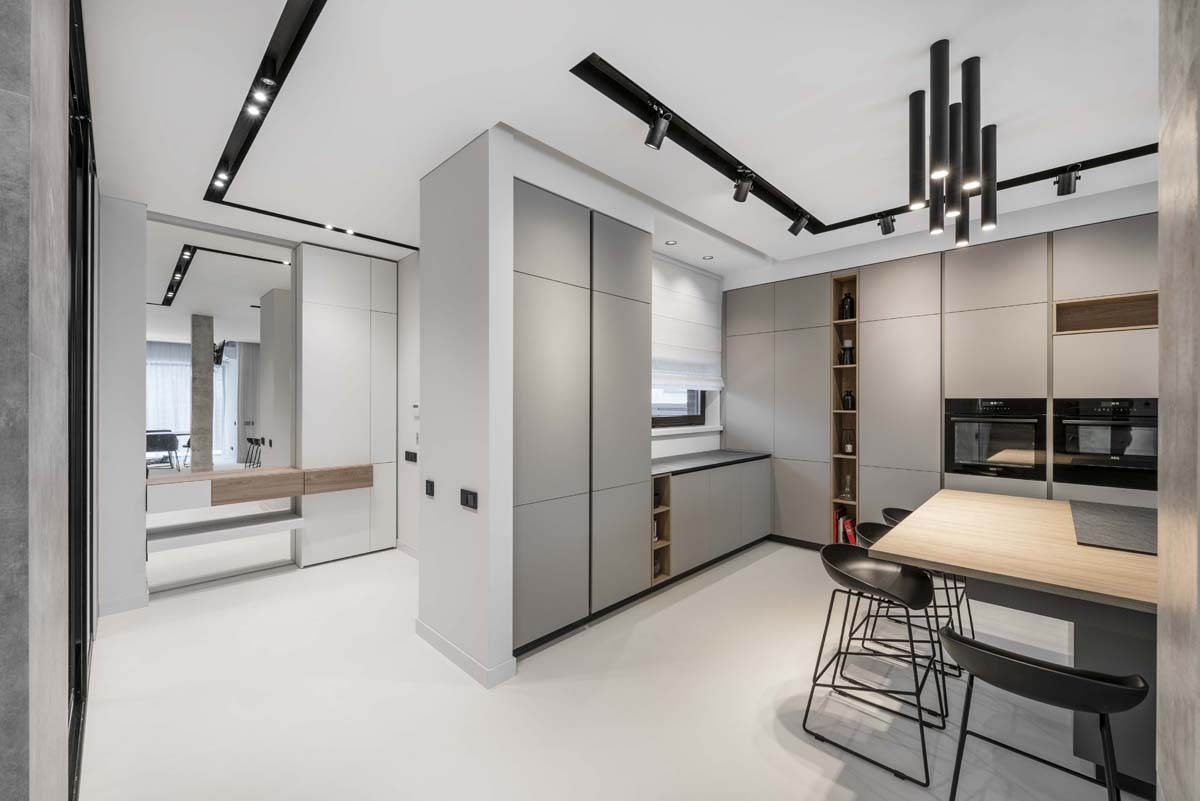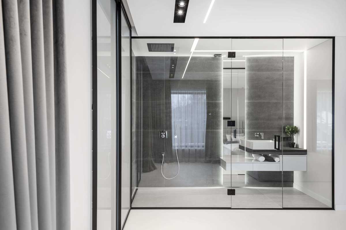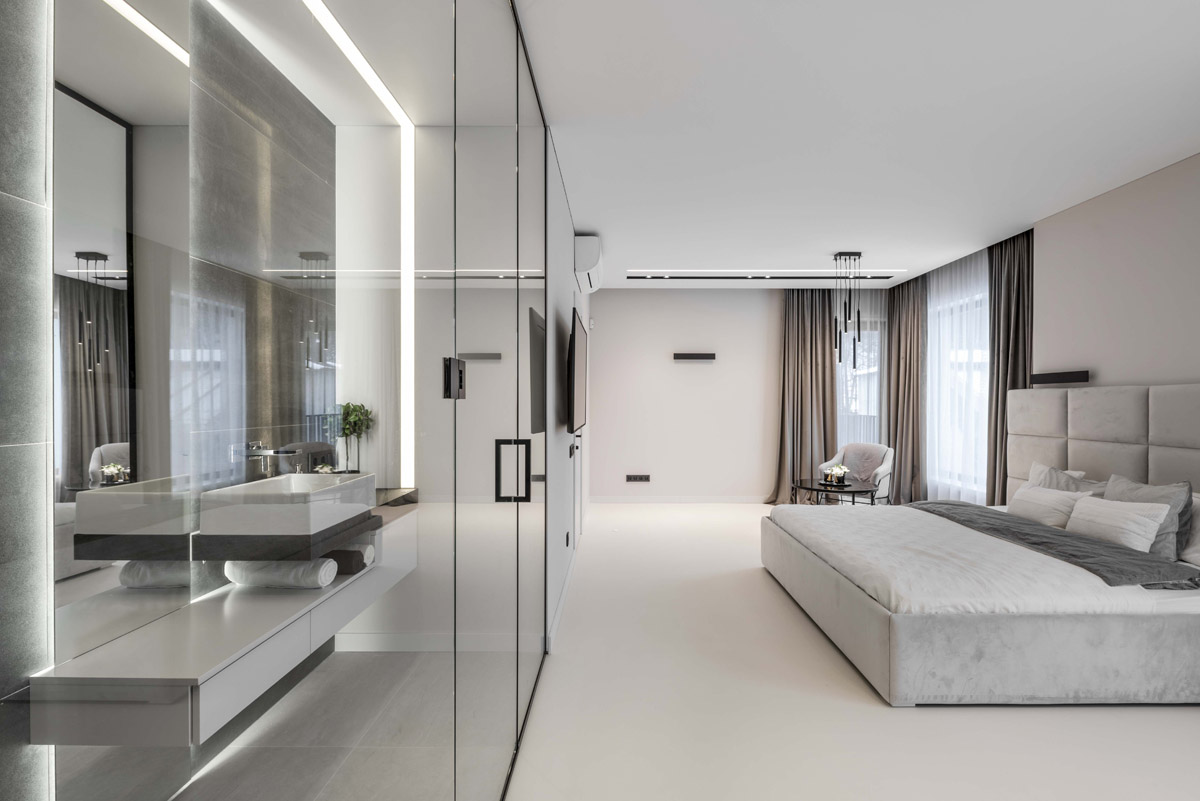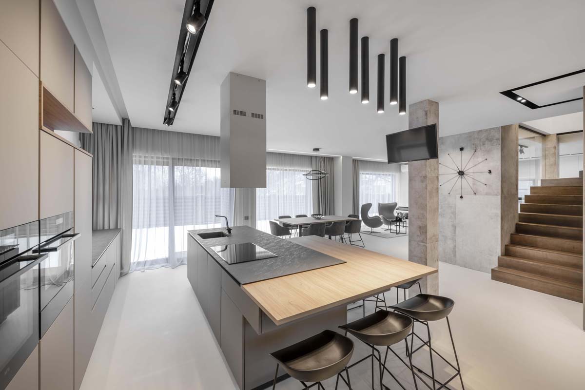 Svarbiausia užduotis, atliekant šį darbą, buvo du sublokuotus kotedžus paversti komfortiškais jaunos šeimos namais. Teko padirbėti prie plano, apjungiant dviejų namų erdves į vientisą, pritaikant jį keturių asmenų šeimos poreikiams. Spalvinį interjero sprendimą savaime padiktavo pats apdailos medžiagų parinkimas. Interjere vyrauja betonas, stiklas, medis.