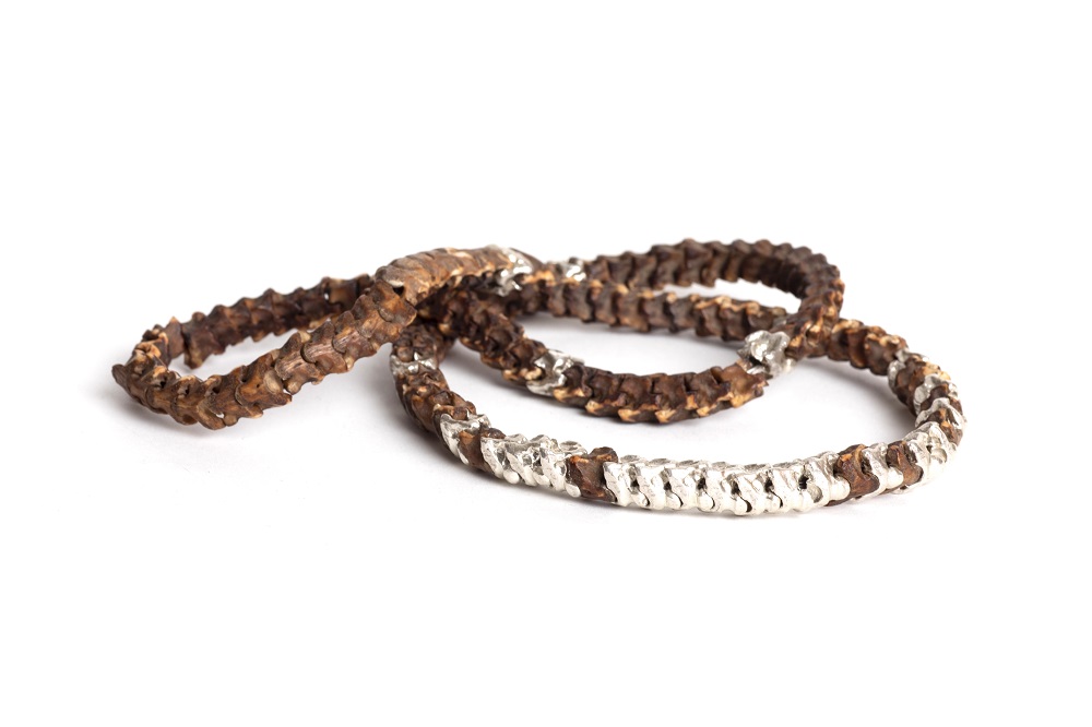 Nereikia toli ieškoti, kad muziejaus sampratoje rastum sąsajų su istorija. Istorinė atmintis, patalpinta muziejuje, įtvirtina ją, padėdama suprasti praeitį. Sanna Svedestedt Carboo (SE) savo segėse naudoja šiaurės elnio odą, apdorodama ją karštu vandeniu taip, kad ji, nors ir būdama labai plona, sugebėtų išlaikyti formą – ir suformuotų savotiškus ažūrinius skydus. Juvelyrika gali turėti ir gynybinę paskirtį; o šios segės asociatyviai siejasi ir su Bastėja, vieta, kuri buvo skirta gynybai ir kurioje iki šiol tebesaugomi šarvai, pabūklai ir ginklai. Istorijai skirti ir Catarinos Hällzon (SE) papuošalai, kuriuose kaip prabangausia medžiaga į metalą įtveriama beržo žievė, anksčiau naudota ir rūbams, ir krepšiams, ir batams gaminti. Tokia dėkingumo paprastai žievei išraiška, ir atsigręžimas į amato praeitį. Visgi neabejotinai ryškiausias istorinių aliuzijų įkūnijimas metale parodoje eksponuojamas… geležinio vilko pavidalu. Vita Pukštaitė-Bružė sukūrė geležinio vilko kailį, anot autorės, to paties, kuris kadaise staugė ant Gedimino kalno. Taip, tai dar ne pripažintas artefaktas, tačiau, kaip teigia autorė, mes jį galime traktuoti kaip esantį „arti-fakto“. O kol jis dar „neįteisintas“, ranka taip ir traukia paliesti plieninius kailio plaukus.