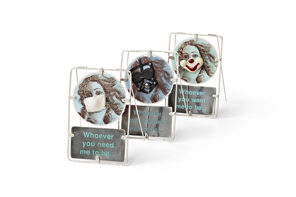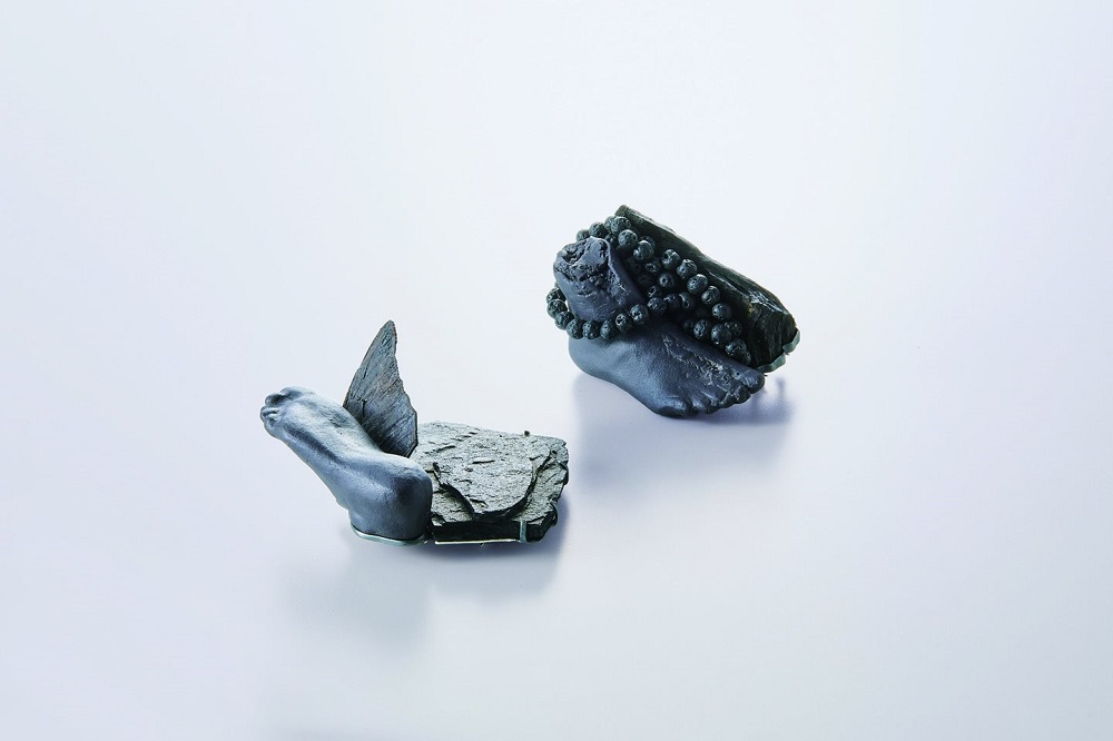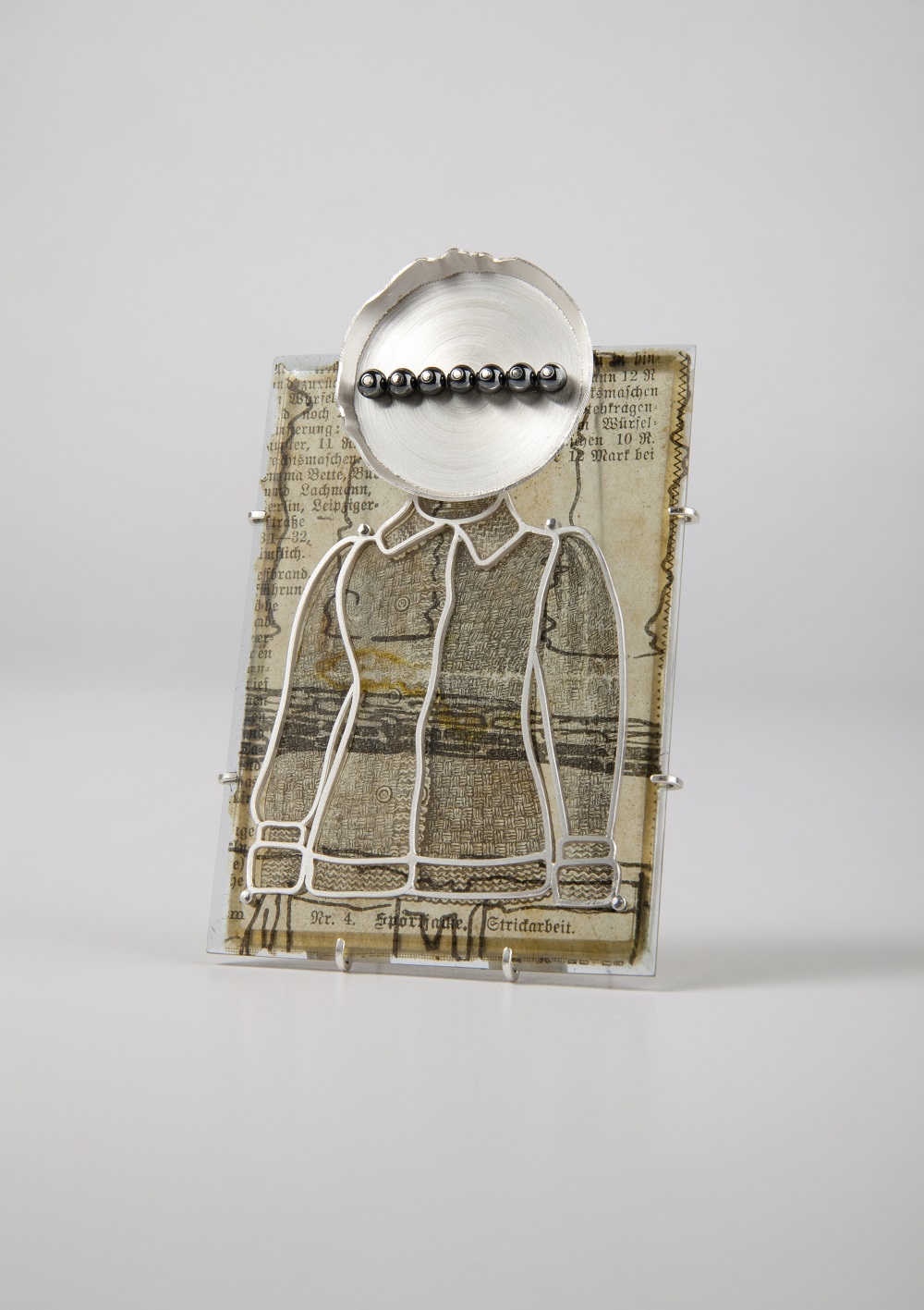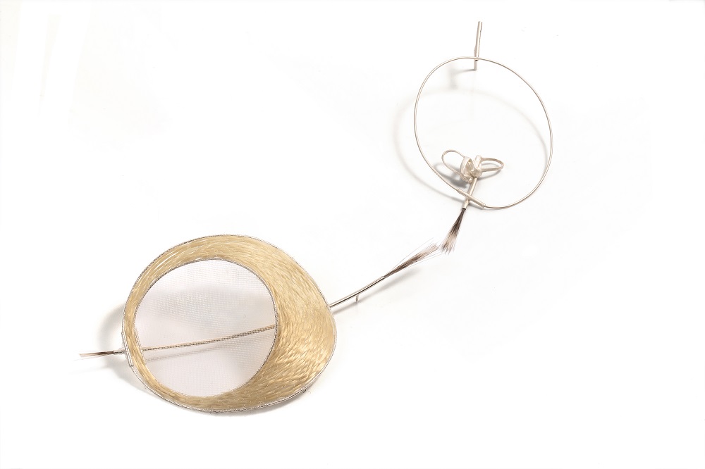 Nanna Obel (DK) | „Aš galiu būti…viskas, kas tik nori, kad būčiau…“, 2020, 6 segės, sidabras, emalis, fotografija, šilkas, auksas.