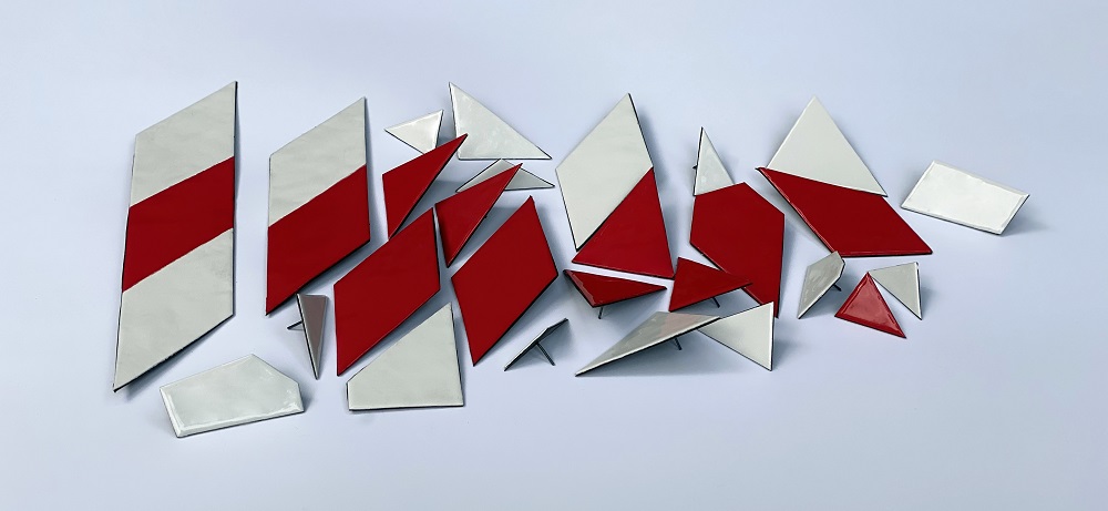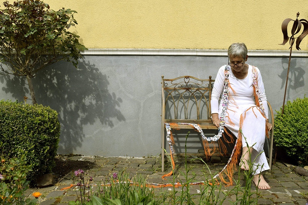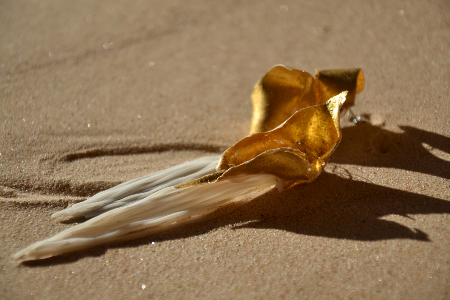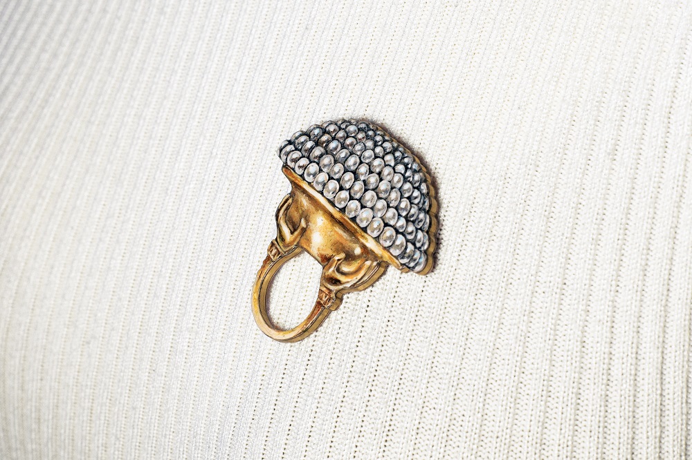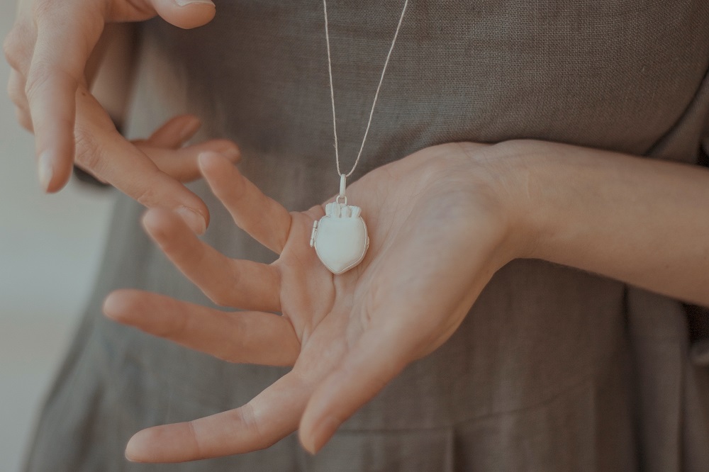 Nanna Obel (DK) | „Aš galiu būti…viskas, kas tik nori, kad būčiau…“, 2020, 6 segės, sidabras, emalis, fotografija, šilkas, auksas.