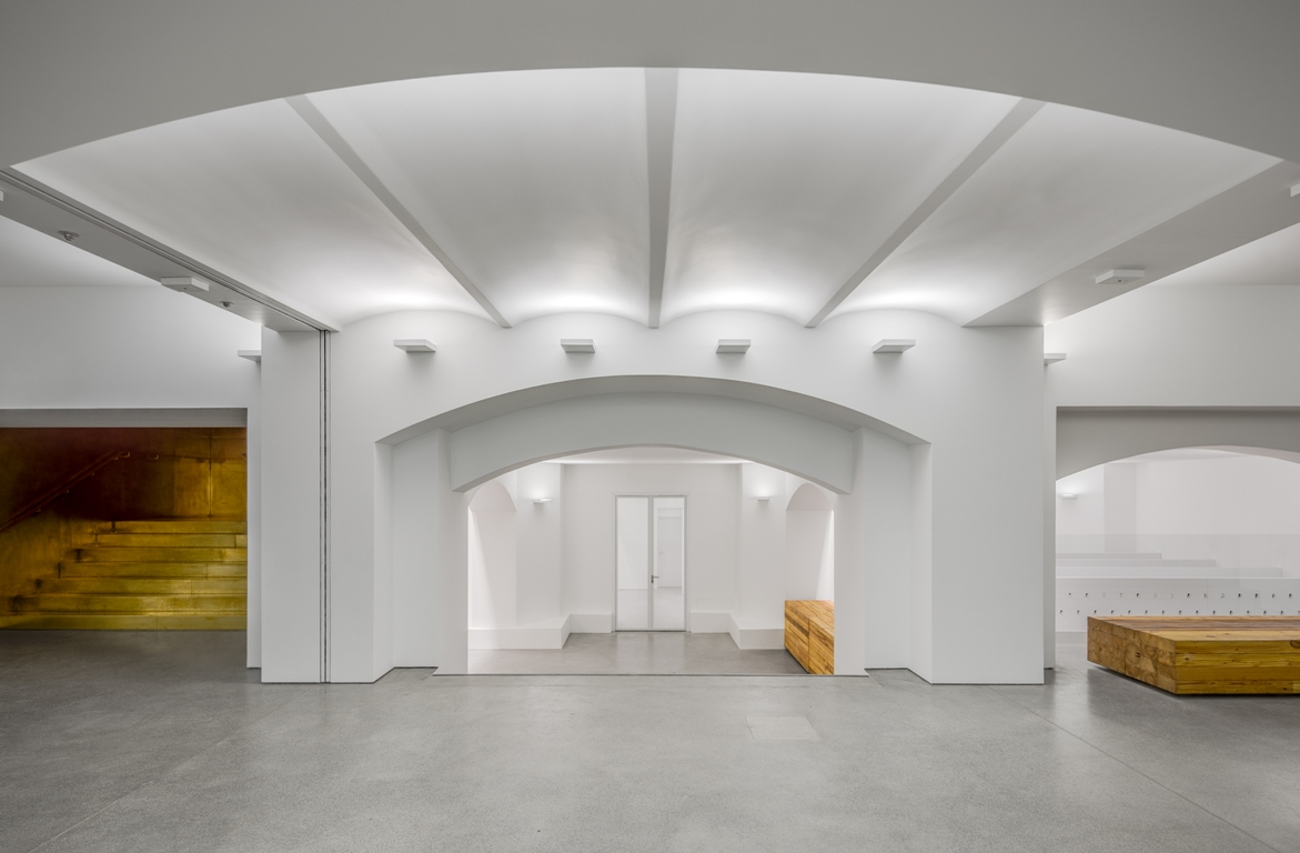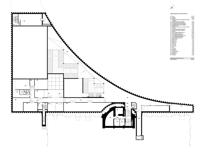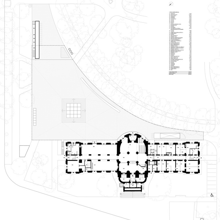 Į naują priestatą pasiūlėme perkelti ir išplėsti restauracines dirbtuves, archyvus ir meno saugyklas bei technines patalpas, kurias vėliau projektavimo procese papildėme ir ekspozicinėmis erdvėmis. Dalyje palėpės erdvių ir kupole įrengėme ekspozicines erdves.