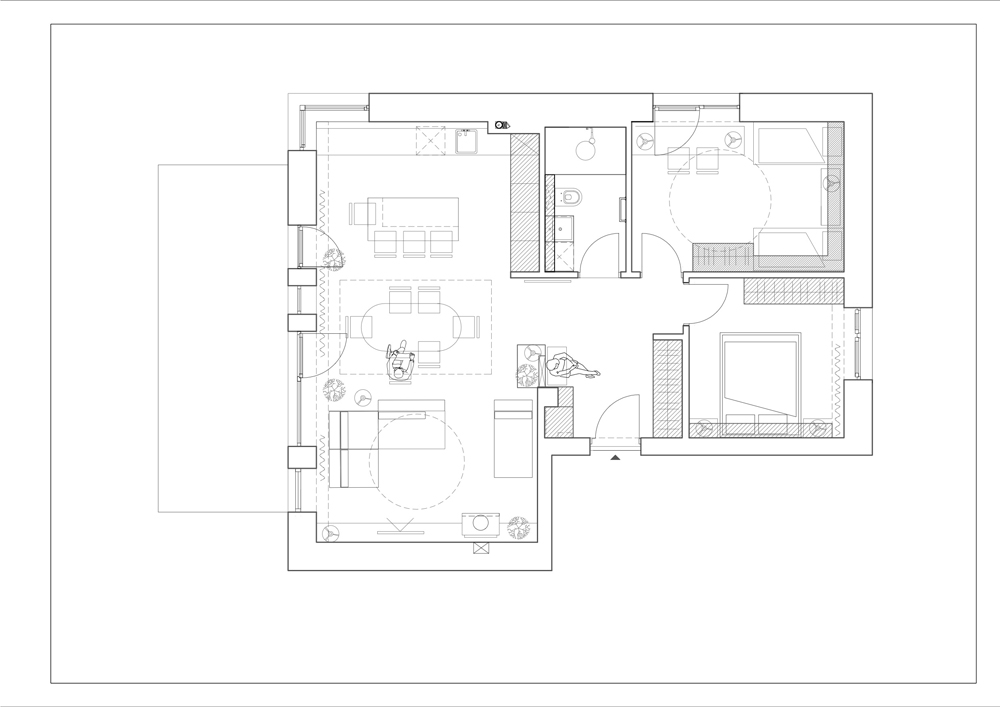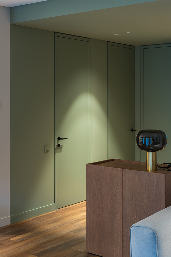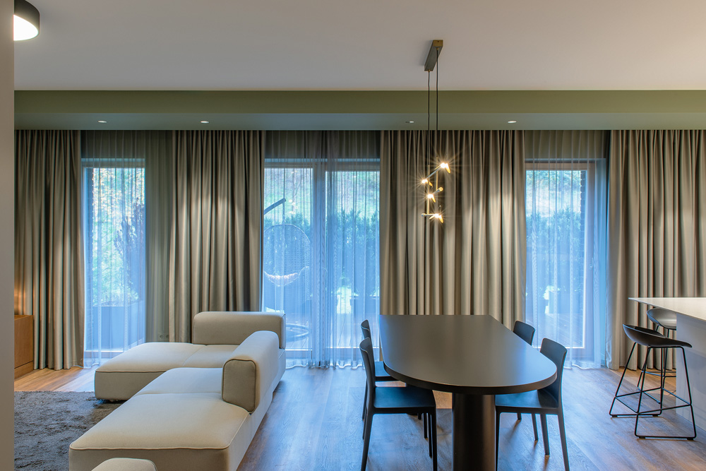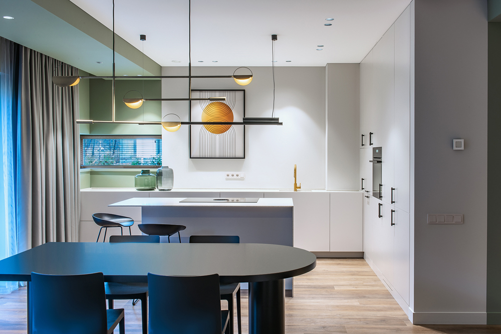 Spalvinių tūrių kompozicija ir skirtingų formų sujungimas. Jaunos šeimos būstas išpildytas taip, kad gyvybės jam pridėtų tik jame gyvenantys, svečiuojantys asmenys.