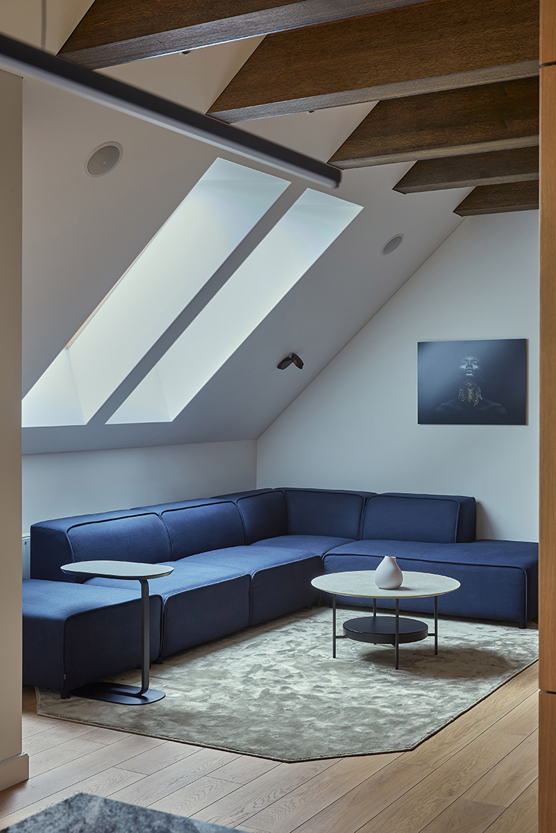 Siekiant išpildyti klientų norus, buvo integruojamos išmaniosios technologijos. Tai du valdymo pultai: vienas – rekuperacinės sistemos, kitas – radiatorių termostatų. Taip pat užsakovai prašė sukurti namus, kuriems nereikėtų tarnauti, kurių nereikėtų smarkiai prižiūrėti. Šeimininkai norėjo, kad jie būtų tarsi savarankiškas organizmas. Šiam pageidavimui patenkinti dizainerė pasitelkė natūralias medžiagas. Viena jų – murmuras, dengiantis vonios plyteles. Šiame kambaryje dušas buvo specialiai įrengtas be durų ar stiklo, kad nereikalautų didelės priežiūros. Kita medžiaga – granitas, puošiantis virtuvės stalviršius. Visiems fasadams ir apdailinėms plokštėms naudotas ąžuolo lukštas, išsiskiriantis atsparumu dilimui, drėgmei, temperatūros poveikiui. Šių medžiagų sintezė suteikia wabi-sabi stiliaus interjerui ne tik praktiškumo, bet ir minkštumo, jaukumo pojūtį.