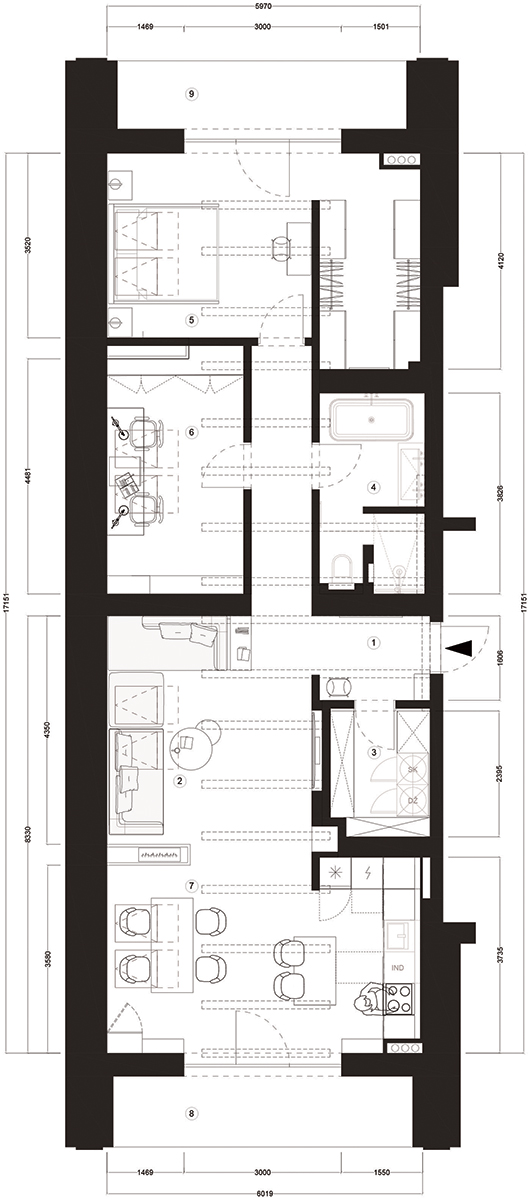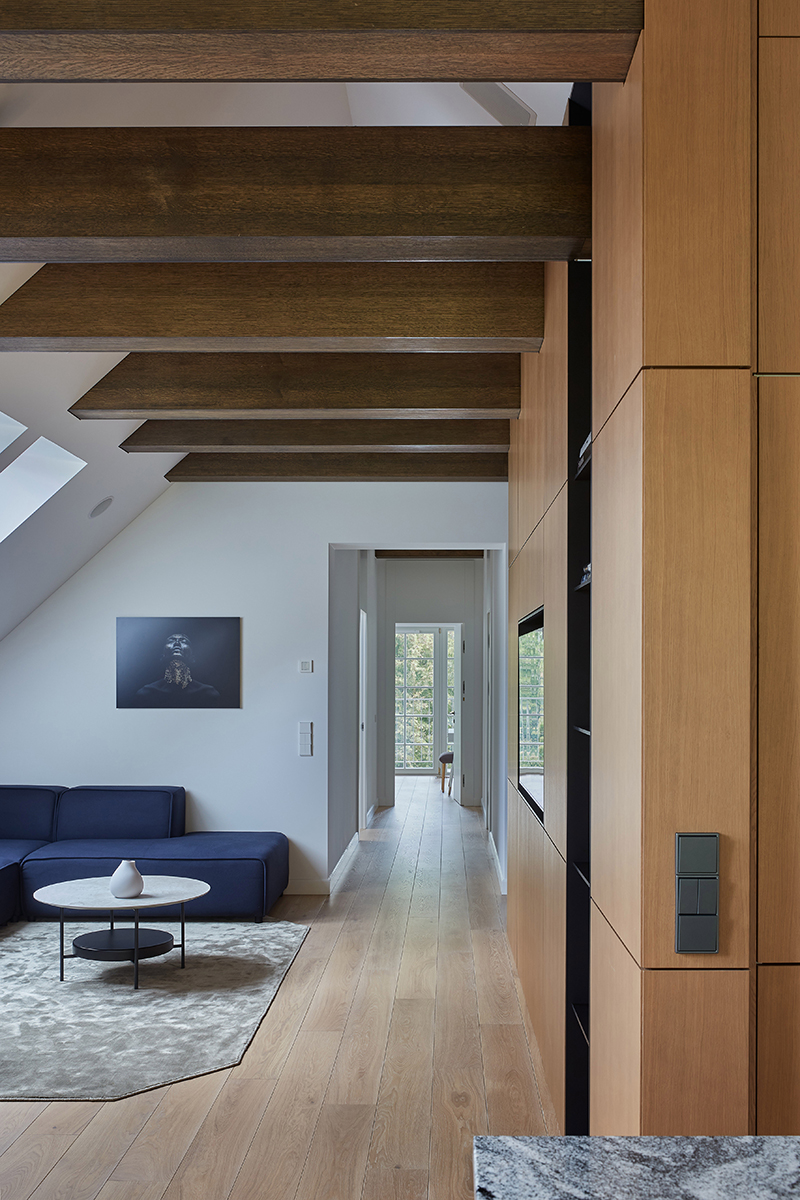 Anot dizainerės Eglės Skuodaitės, projekto užuomazgos prasidėjo nuo pažinties su užsakovais lankantis neįrengtame bute. Pirmiausia į akis krito daug nereikalingų pertvarų ir pažemintų lubų. Viską perplanavus ir išvalius, išryškėjo buto lubų aukštis – jį buvo galima išnaudoti projektuojant erdves. Visas įrengimo procesas vyko išties sklandžiai dėl puikiai susiklosčiusių autorės ir klientų santykių: tai lėmė organiškus sprendimus kuriant idiliškus jaunos šeimos būsimuosius namus. Įgyvendinant interjero viziją buvo remtasi praktiškumo, ilgaamžiškumo, natūralumo ir daiktų minimalizmo kriterijais.