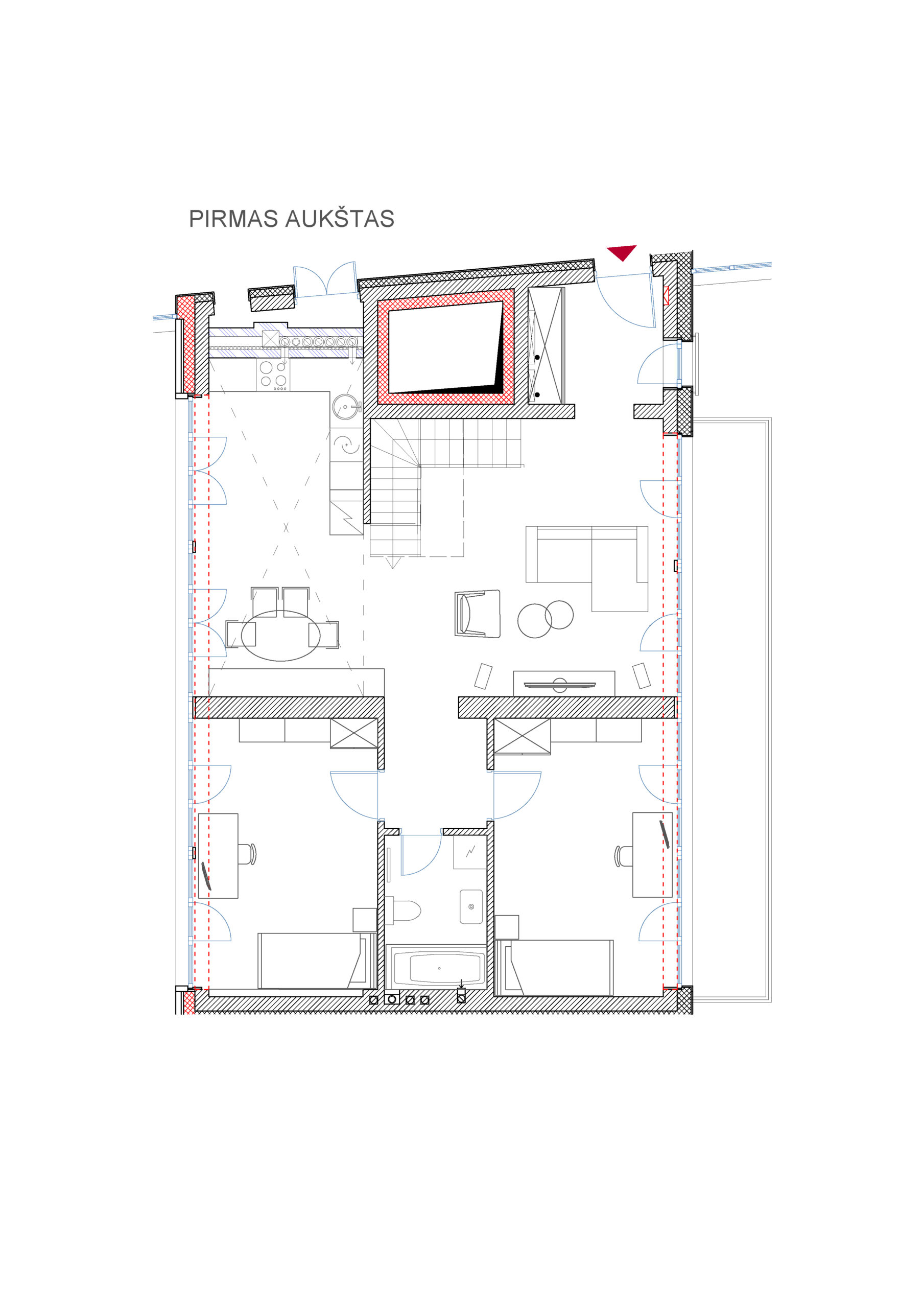 Dviaukščio buto interjeras kurtas atsižvelgiant į šeimos narių charakterius, gyvenimo būdą ir estetinį skonį, tačiau pats grožis atsiskleidė suradus autentiškus, būtent šiems gyventojams tinkančius ir patinkančius dizaino sprendimus, derančius su praktiškumu ir funkcionalumu.