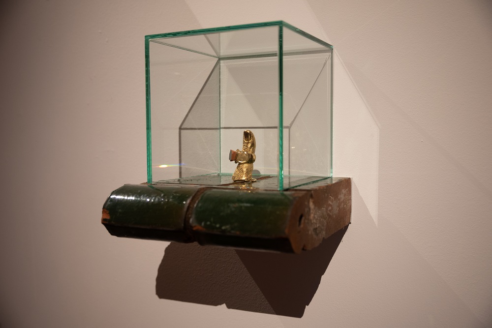 – Santykis su kūnu ir yra galbūt vienintelis dalykas, išduodantis, kad mano kūriniuose visgi galima aptikti juvelyriką. Pavyzdžiui, eksponuodama savo solo parodą Klaipėdos kultūrų komunikacijų centro parodų rūmuose 2019-aisiais vienoje iš instaliacijų (jos pavadinimas „In gold we trust“ buvo pasirinktas ir kaip visos parodos pavadinimas), video darbe ant savęs dėjau 24 karatų auksą. Kitos prasminės detalės, kaip aukso žodžiai, auksinės odos bateliai, aukso imitacijos, tekstilinė striukė, buvo tik elementai, pirštu bakstelėjantys į medžiagos fiktyvumą ir utopinį reikšmingumą. Įveiklindama savo kūną instaliacijoje demonstruoju savo asmeninę galią valdyti šią medžiagą ir elgtis, kaip tik noriu. Tačiau tą gali padaryti bet kuris iš jūsų! Todėl niekada nevengiu ir papildomų „žaidimo“ elementų, kurie parodytų, kad tas objektas iš tikrųjų tėra tik daiktas, kol su juo nepradedi žaisti. Tai reiškia, kad bet koks konceptualios juvelyrikos objektas gali ištransliuoti pagrindinę mintį tik drauge su kūnu. Bet net ir tuomet man įdomiau, kai tas objektas yra ne dekoratyvus, o labiau provokatyvus. Tarkim, auksiniai žiedai, toje pačioje instaliacijoje išeksponuoti ant į sieną sukaltų vinių, buvo atlieti nuimant atspaudus nuo mano rankų, pirštų odos. Pati mintis nėra nauja, tai šimtą kartų matytas dalykas, panašių galima rasti bet kokiame kataloge. Bet mano instaliacijoje tikslas buvo tiesmukai žiūrovui parodyti, jog jo paties kūnas irgi gali būti puošmena. Kad kūno nereikia kažkaip specialiai performuoti, išblizginti ir nupoliruoti, kad tiktų menui, bet kad pats žiūrovo kūnas ir jo oda gali būti turinys. Provokavau paimti ir matuotis.