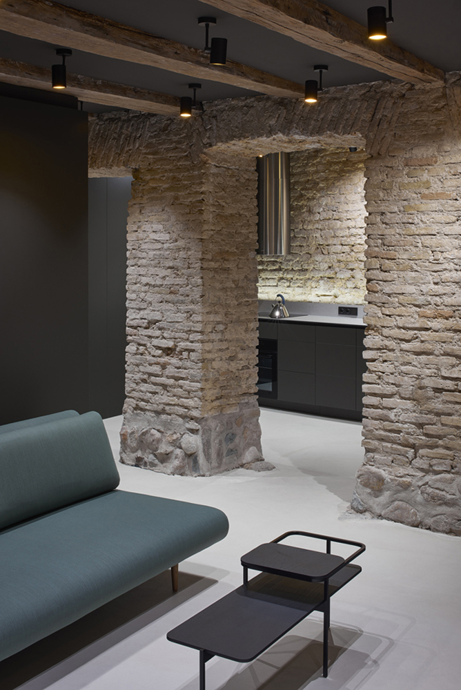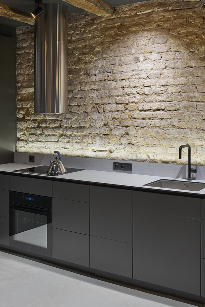 Nestandartinė erdvė, istorinio Vilniaus plytos ir užsakovo pasitikėjimas įkvėpia kūrybiniam procesui, kuris baigiasi tokiu rezultatu, kuris džiugina proceso dalyvius bei nepalieka abejingų. Prieš remonto pradžią pirmą kartą pamačius butą, kuris randasi cokoliniame aukšte, iš karto į akis krito istorinės plytų sienos bei autentiškos medinės lubų sijos. Bendru sutarimu šios detalės ir tapo pagrindiniais interjero akcentais, kuriuos buvo stengtasi pabrėžti kontrastingomis spalvomis, minimalistiniais funkciniais baldais ir kitais interjero elementais.