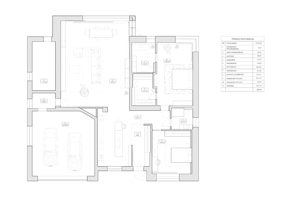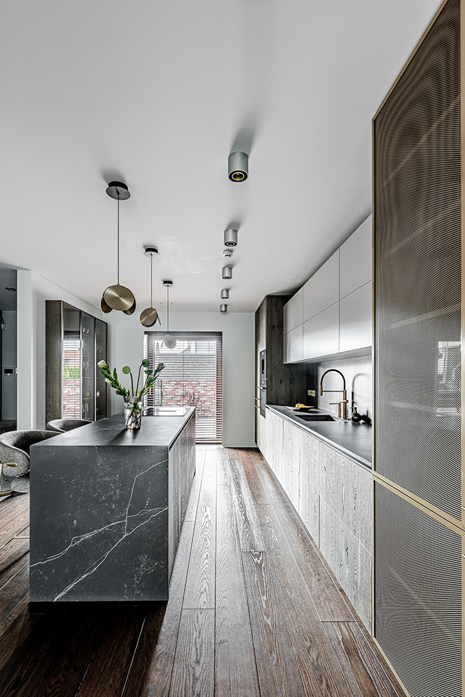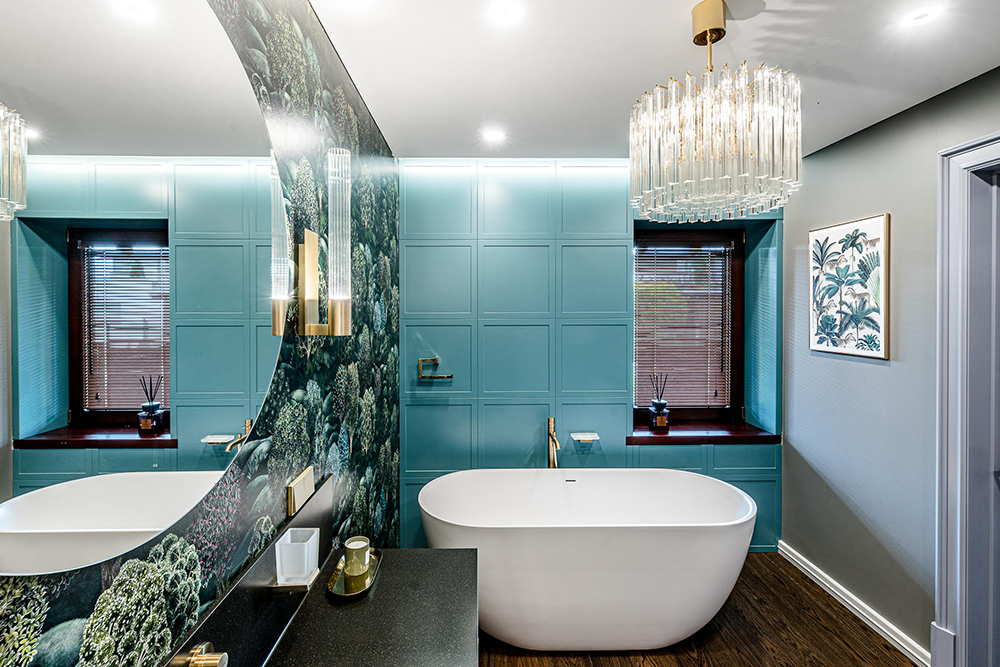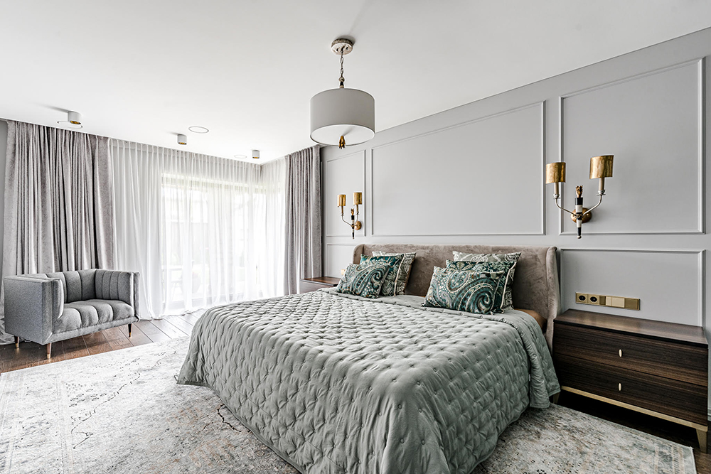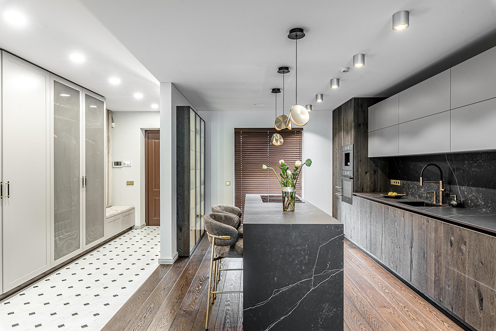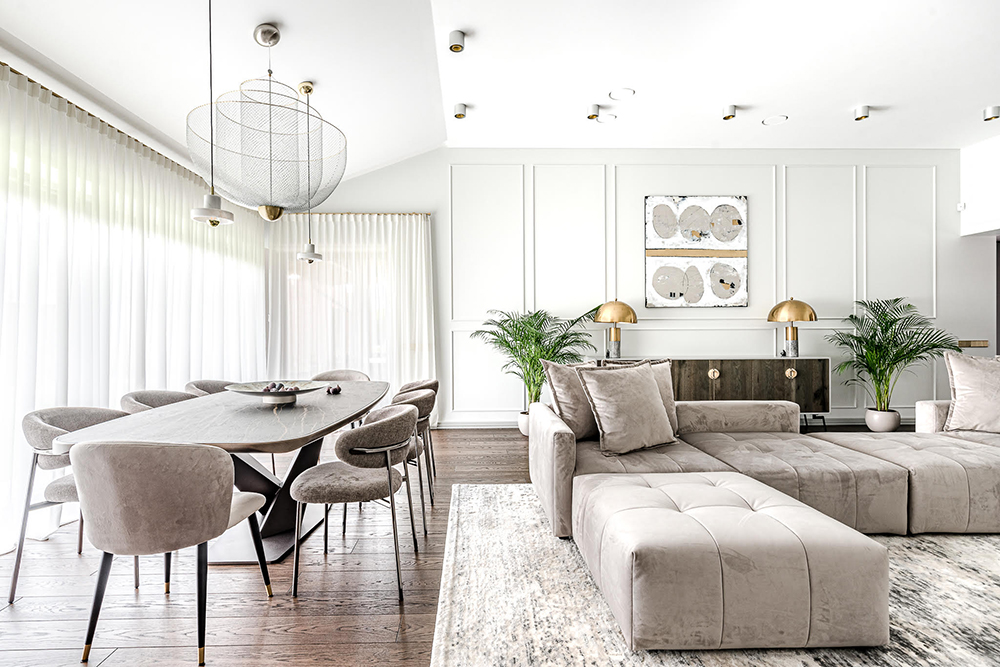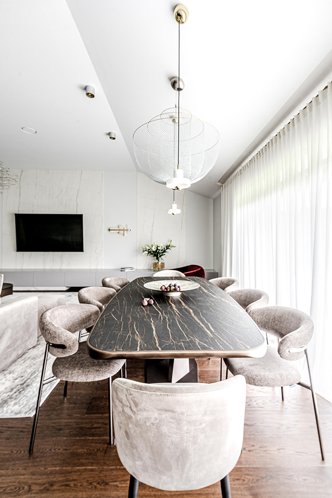 Interjeras traukia akį savo erdviškumu ir prabangiu dekoratyvumu. Interjere susipina pastelinių, nude tonų paletė drauge su ryškiomis gamtos žalumo spalvomis. Balduose daug natūralios medienos paviršių, kurie organiškai sąveikauja su šlifuoto aukso detalėmis bei gaiviais bei prabangiais gamtos atspalviais. Interjeras alsuoja subtilia prabanga, neperžengdamas saikingumo ir estetikos ribos.