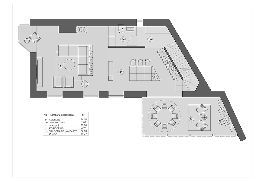 Mūsų siekiamybė buvo šį pastatą paversti namais, kad užsakovai gyvendami jame negalvotų apie tai kur yra tam tikri daiktai, bet viskas vyktų natūralia eiga. Žmogus gyvendamas savo namuose neturi jaustis kaip svečias, jam turi būti patogu. Šiuo konkrečiu atveju architektūrinio interjero projektas apėmė daug etapų: nuo visiškos pastato rekonstrukcijos iki patalpų interjero kūrimo. Rekonstrukcijos metu stengėmės neprisirišti prie standartų, nes individualus namų interjeras yra beveik sakralus dalykas, tai visiškai atspinti name gyvenančią šeimą, jos įpročius ir pomėgius.