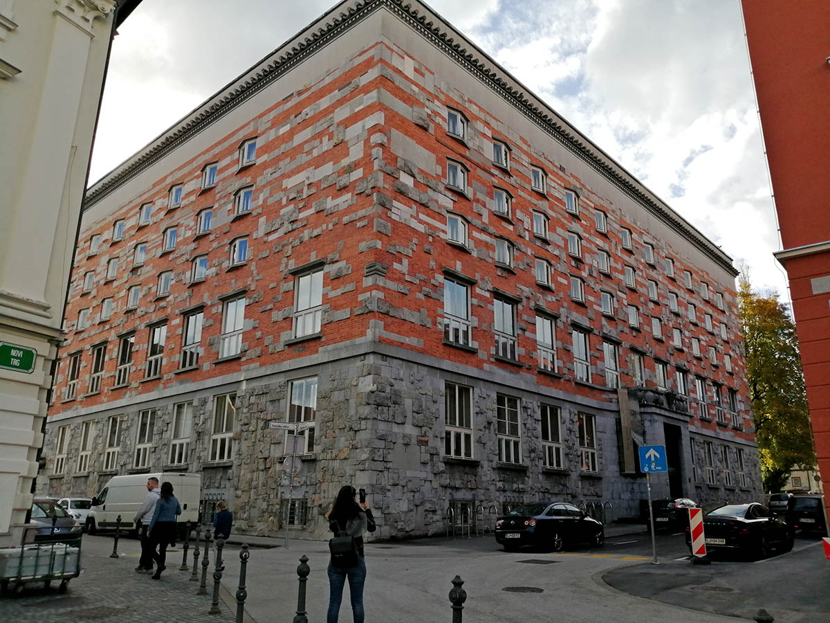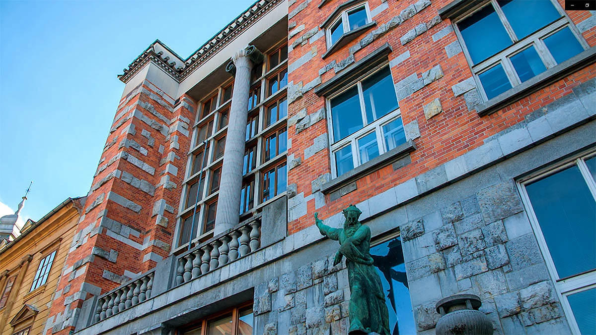 Šalimais esantis ir į urbanistinį planą lengva ranka įkomponuotas Nacionalinės ir Universiteto bibliotekos pastatas, žvelgiant į jį iš greta esančios Novi Trg aikštės, tiesiog pribloškia savo monumentalumu. Didžiulio penkiaaukščio statinio tūris iš išorės padengtas mišriu akmens plokščių ir apdailos plytų dekoru. Viduje lankytojams atsiveria didingas pagrindinių laiptų tūris bei erdvios skaityklų salės. Greta šių monumentaliųjų grožybių Jožė Plečnikas skyrė dėmesį ir mažoms, bet jaudinančioms detalėms. Pavyzdžiui, dauguma durų rankenų bibliotekos pastate yra žirgo galvos formos. Anot architekto, tai yra sparnuotojo žirgo Pegaso, nunešančio kūrėjus į Parnaso kalną, metafora.