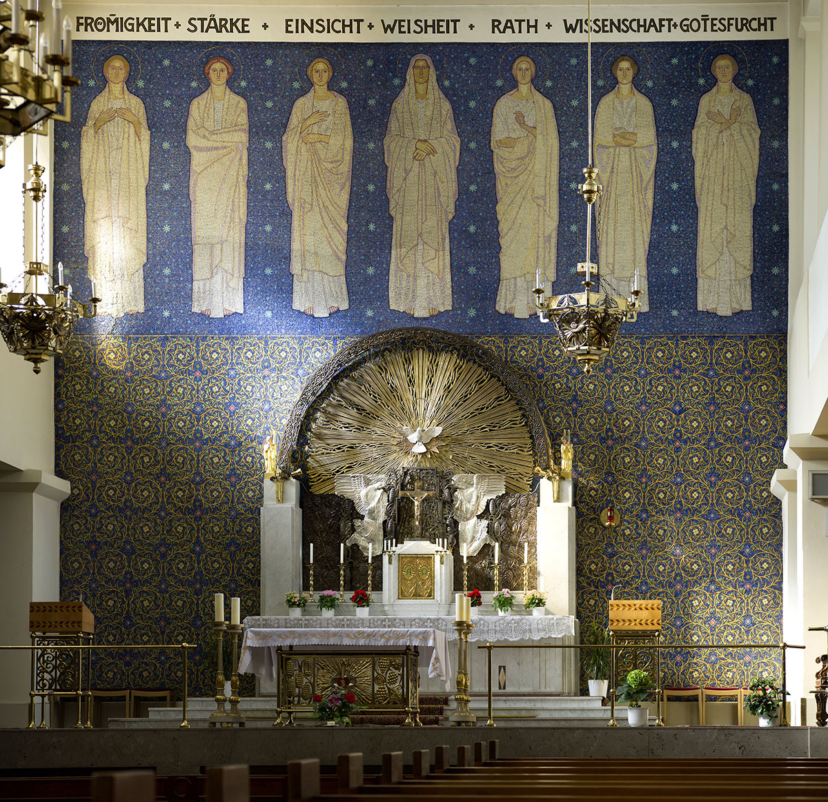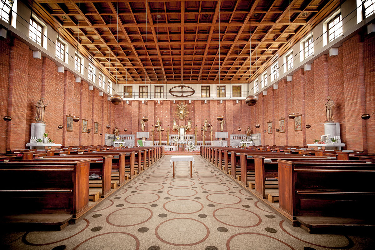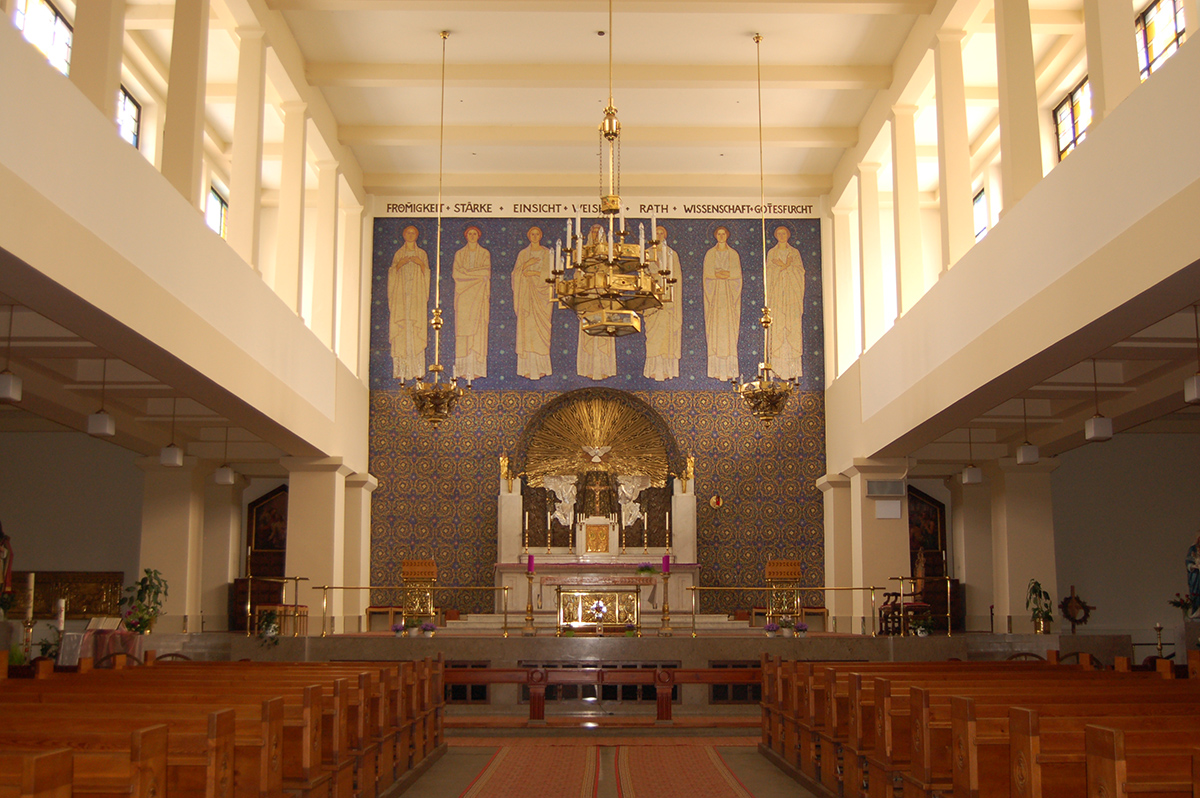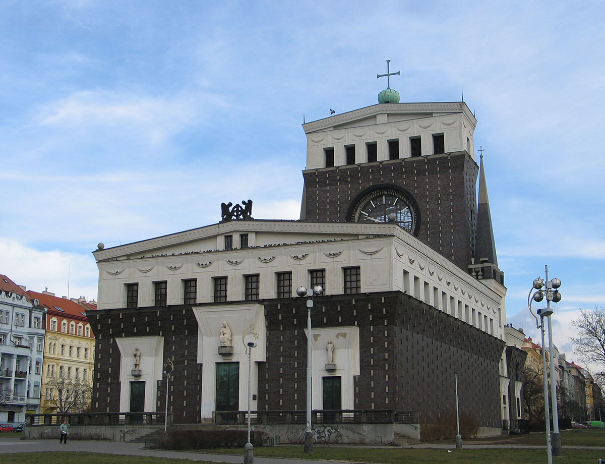 Antra, tai megalito statinį primenančios aklinos išorinės raudonųjų plytų sienos, kiek pasvirusios į vidų ir dekoruotos spalvotų plytų kyšuliais, imituojančiais karališkos mantijos dekorą. Ir trečia, tai originalios skulptūros ir liturginiai objektai (kurių dalis sukurta paties Plečniko), griežtu ritmu išskirstyti po altorinę bažnyčios dalį. Bažnyčios aplinkai nukentėjus nuo karo slėptuvių ir metro linijų statybos, susidomėjimas ja buvo gerokai atslūgęs, bet šiuo metu ji vėl laikoma vienu įstabiausių Prahos kulto statinių.