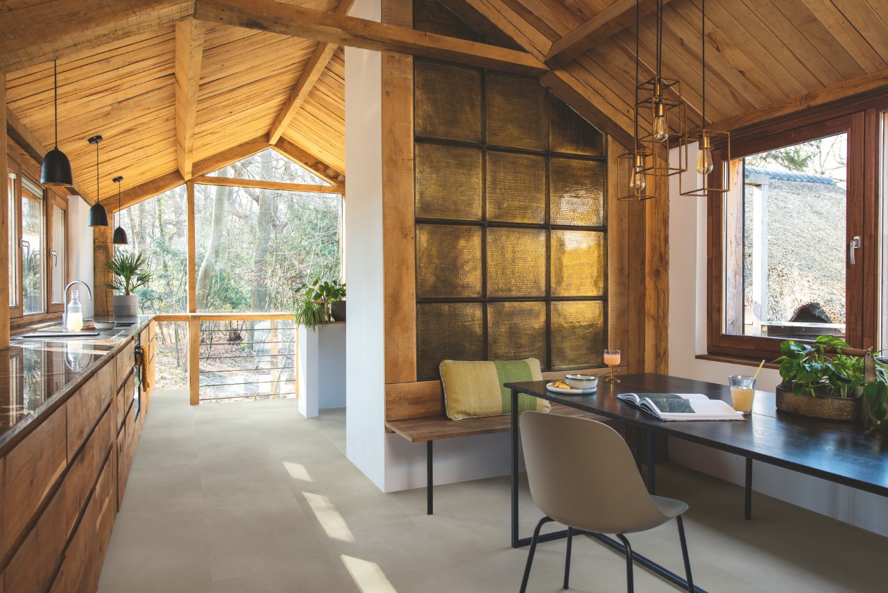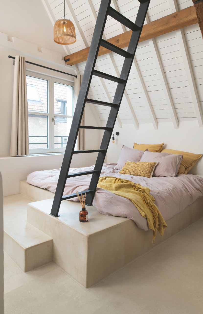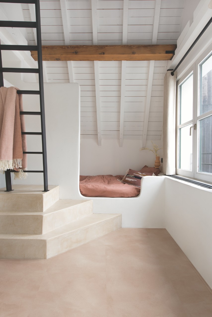 Nepaisant to, kad patalpa maža, Arno daug dėmesio skiria kurdamas jos erdves. „Svarbus dalykas, kuri žmonės linkę pamiršti, kuris atlieka svarbų vaidmenį kuriant funkcionalumą ir bendrą jaukumą kambaryje – grindys. Kadangi ta pati erdvė atlieka keletą paskirčių, Jums reikės lengvai prižiūrimos grindų dangos, kuri būtų atspari dėmėms, įbrėžimams ir vandeniui. Puikus pasirinkimas – laminatas arba vinilinės grindys. Interjeras žymiai pasikeis ir įgaus erdvės pojūtį pasirinkus tinkamas grindis. Kurdamas dizainą aš linkęs naudoti šviesesnius, šaltesnius tonus, nes jie sukuria erdvumo jausmą. Kad sukurčiau šį jausmą savo interjeruose esu linkęs naudoti šviesesnius, šaltesnius tonus. Medžio raštas ir šakos taip pat turi būti subtilūs, kad grindys neatrodytų pernelyg perkrautos. Kalbant apie montavimą, lentų montavimas lygiagrečiai su ilgiausia namų siena padeda sukurti iliuziją, kad kambarys yra didesnis“.