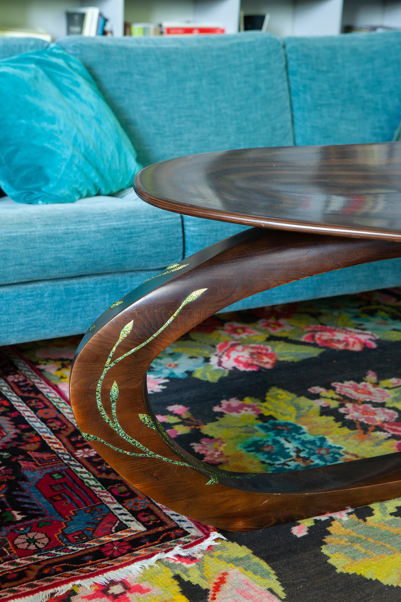 Pati savo būsto interjerui taip pat sukūriau keletą baldų ir interjero detalių: minkštus krėslus, kavos stalelį, miegamojo lovą, dekoratyvinius šviestuvus, tekstilinius užtiesalus.