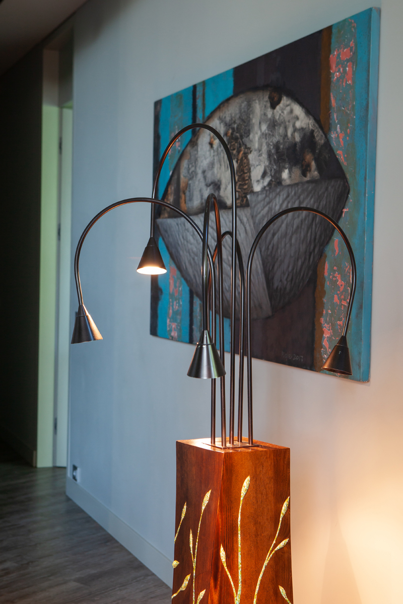 Meno kūrinys visada turi poveikį – jis gali būti aktualus arba neaktualus, suprantamas arba sudėtingas, netgi intelektualiai užprogramuotas. Meno kūrinio pasirinkimą lemia interjeras, poreikis sustiprinti įvaizdį arba papildyti kolekciją. Rinkausi tai, kas dera prie pastato interjero, nes man namai yra mano pasaulėjautos dalis. Ant sienų kabo keletas Kristinos Norvilaitės ir Miglės Kosinskaitės dailės darbų. Dar turiu porą Romualdo Kvinto ir Jurijaus Grigorovičiaus skulptūrų. Aš pati tapau, tačiau savo darbų namuose neeksponuoju. Kolekcionuoju spalvoto stiklo indus.