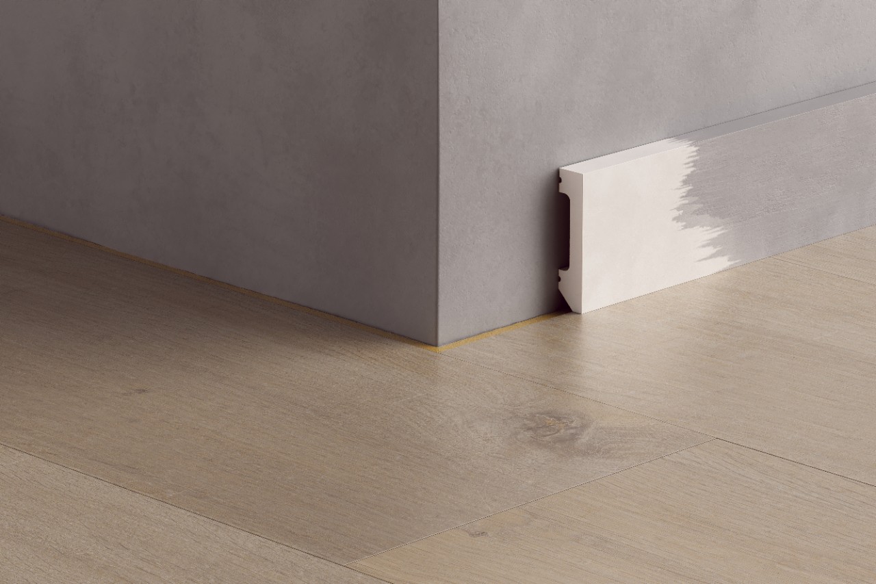 Pirmiausia, svarbu įsivertinti ar jūsų grindjuostės turėtų atlaikyti drėgmę, ar jums reikalinga galimybė jas plauti vandeniu? Jeigu atsakymas taip, rekomenduojame rinktis iš iš perdirbto polistireno gaminamas grindjuostes. Polistireno grindjuostės yra 100% atsparios vandeniui ir 100% perdirbamos. Prie sienos jos montuojamos su specialiais klijais, o pritvirtintas grindjuostes galima dažyti jūsų sienų spalvą atitinkančiais dažais arba jas galima palikti baltas. Montuojant grindjuostes drėgnose patalpose tokiose kaip vonios zona naudokite Foamstrip ir Aqua Sealant priemones vandeniui nepralaidžiai apdailai užbaigti.