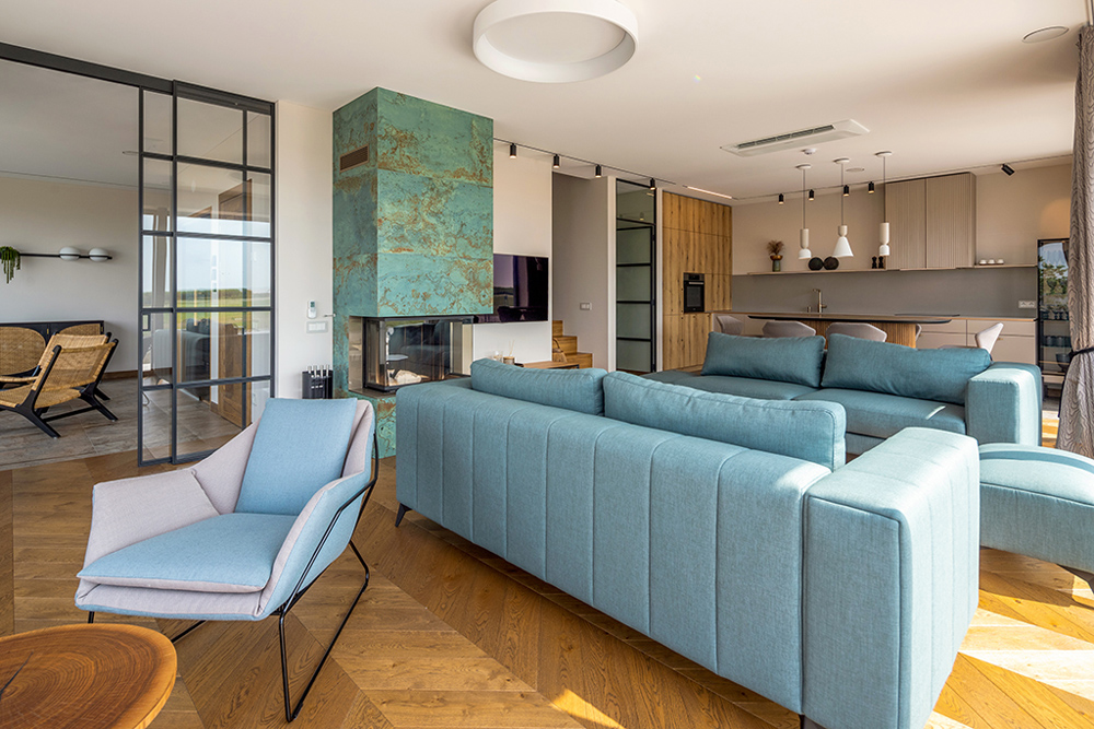Šiame interjere pasiektas rezultatas – ne tik funkcionalūs ir estetiški namai, bet ir sukurta vieninga namų istorija, kur kiekvienas kambarys turi savo veidą, praturtintą tematikomis, faktūromis, kokybiškais daiktais ir apdailos medžiagomis, kurie rinkti išskirtinai šiai aplinkai, racionaliais ir iracionaliais sprendimais, kurie kūrybiniame procese neišvengiami.