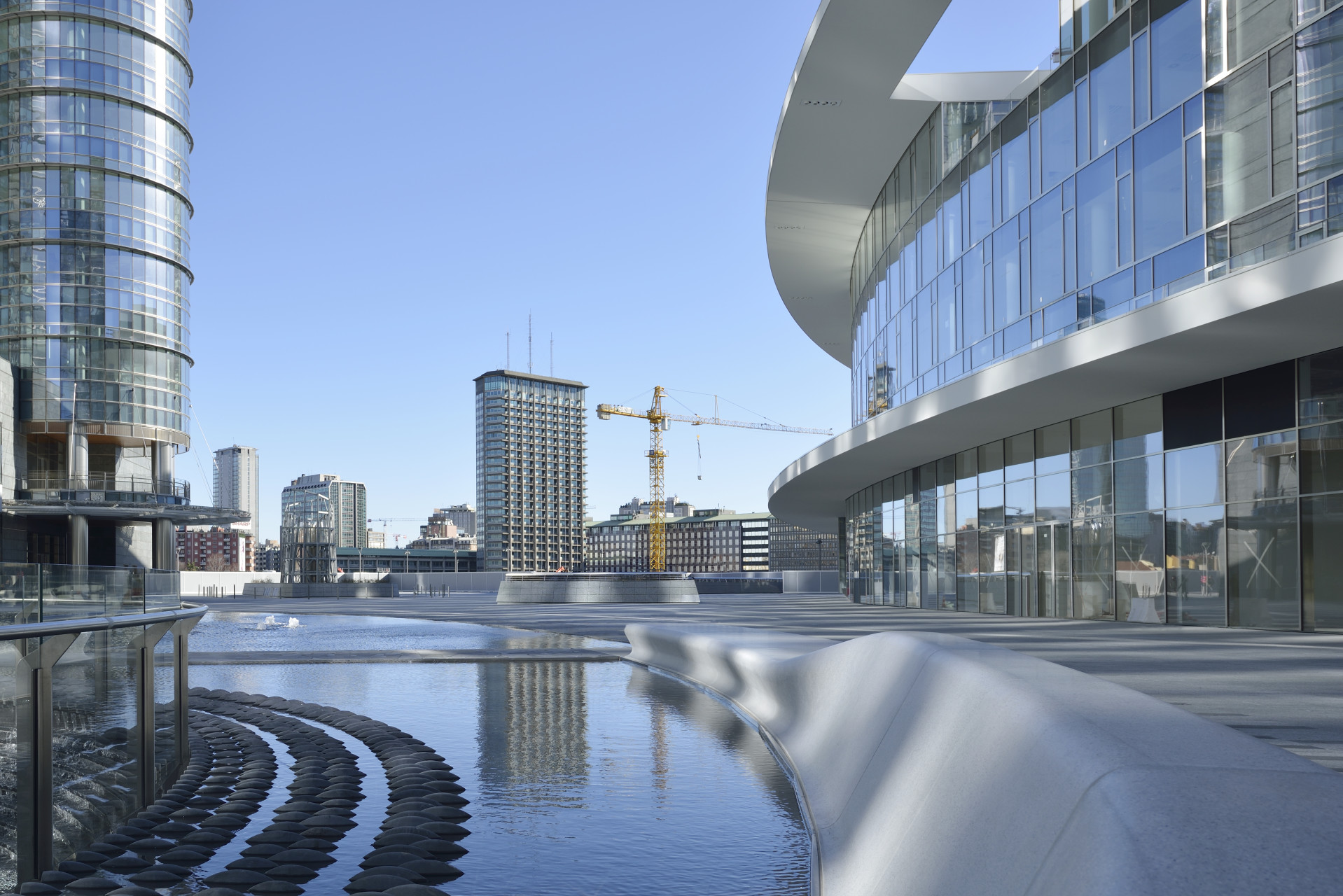 Vienoje didžiausių Europoje architektūrinių intervencijų dalyvavo daugiau nei 20 bendrovių iš 8 pasaulio šalių. Bendrąjį aikštės projektą atliko garsaus Argentinos architekto Césaro Pelli biuras. Aikštės, o kartu ir viso Milano silueto akcentu tapo „UniCredit“ banko pastatas su bokštu, siekiančiu net 231 m aukštį. Pati aikštė, pakylėta 6 m. virš žemės lygio, yra 80 m skersmens; ją puošia trys fontanai, įrengti atskirose cokolinėse ertmėse. Be to, aikštės lankytojus pasitinka originali skulptoriaus Alberto Garutti instaliacija. Varinės „triūbos“, einančios gilyn per kelis automobilių aikštelės aukštus ir iškeliančios į paviršių Milano požemių garsus. Ši instaliacija, taip pat iš aikštės atsiverianti Milano dangoraižių panorama privilioja į Piazza Gae Aulenti daugybę turistų; jų keliskart pagausėja kiekvieną balandį, kai aikštė ir aplinkui esančios parodų salės įtraukiamos į Milano dizaino savaitės renginių verpetą. Taip didžiosios italų architektės atminimas kasmet įgauna vis naują prasmę.