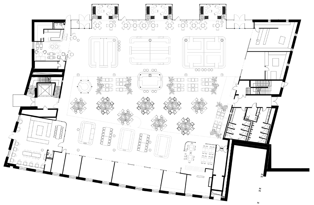 Tai multifunkcinė erdvė, kurios pagrindinė funkcija maitinimas ir prekyba. Mobilios klombos leidžia ją pritaikyti turgaus, koncertų ar kitokių renginių scenarijams. Didelis dėmesys skirtas skirtingoms sėdėjimo zonoms, taip suteikiamas jaukumo jausmas kiekvienam lankytojui.