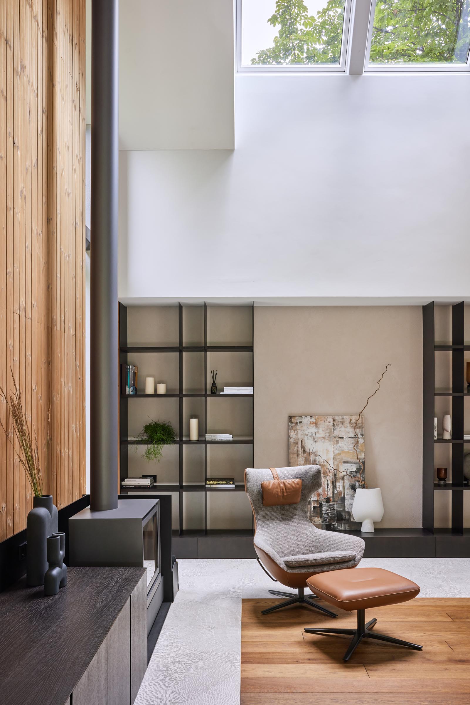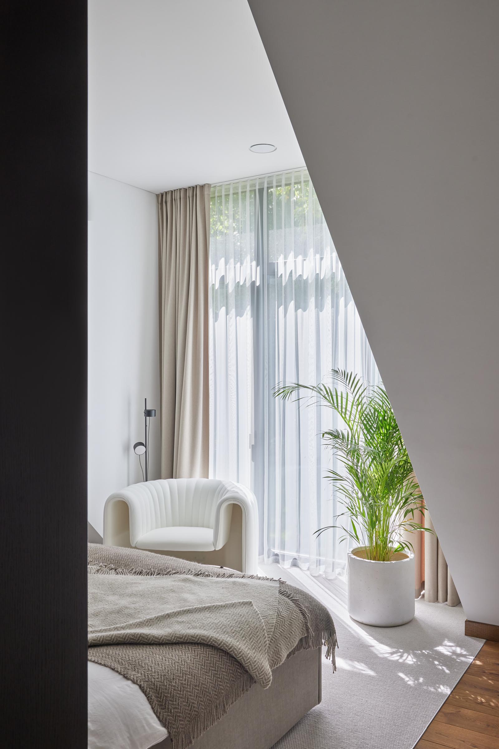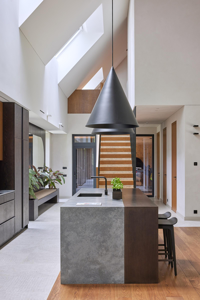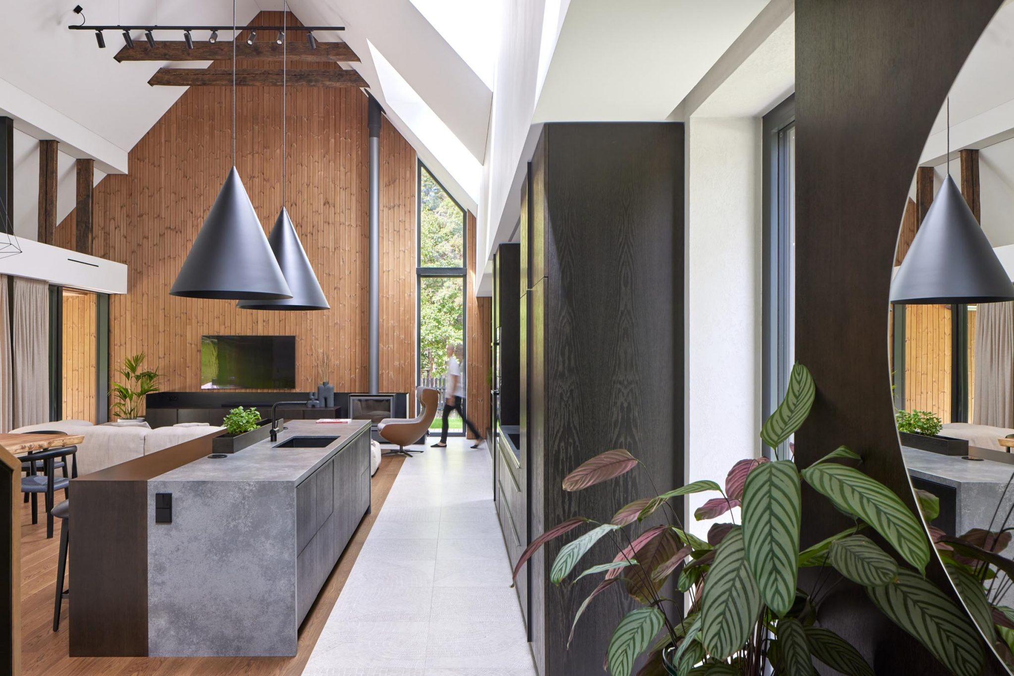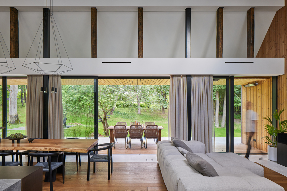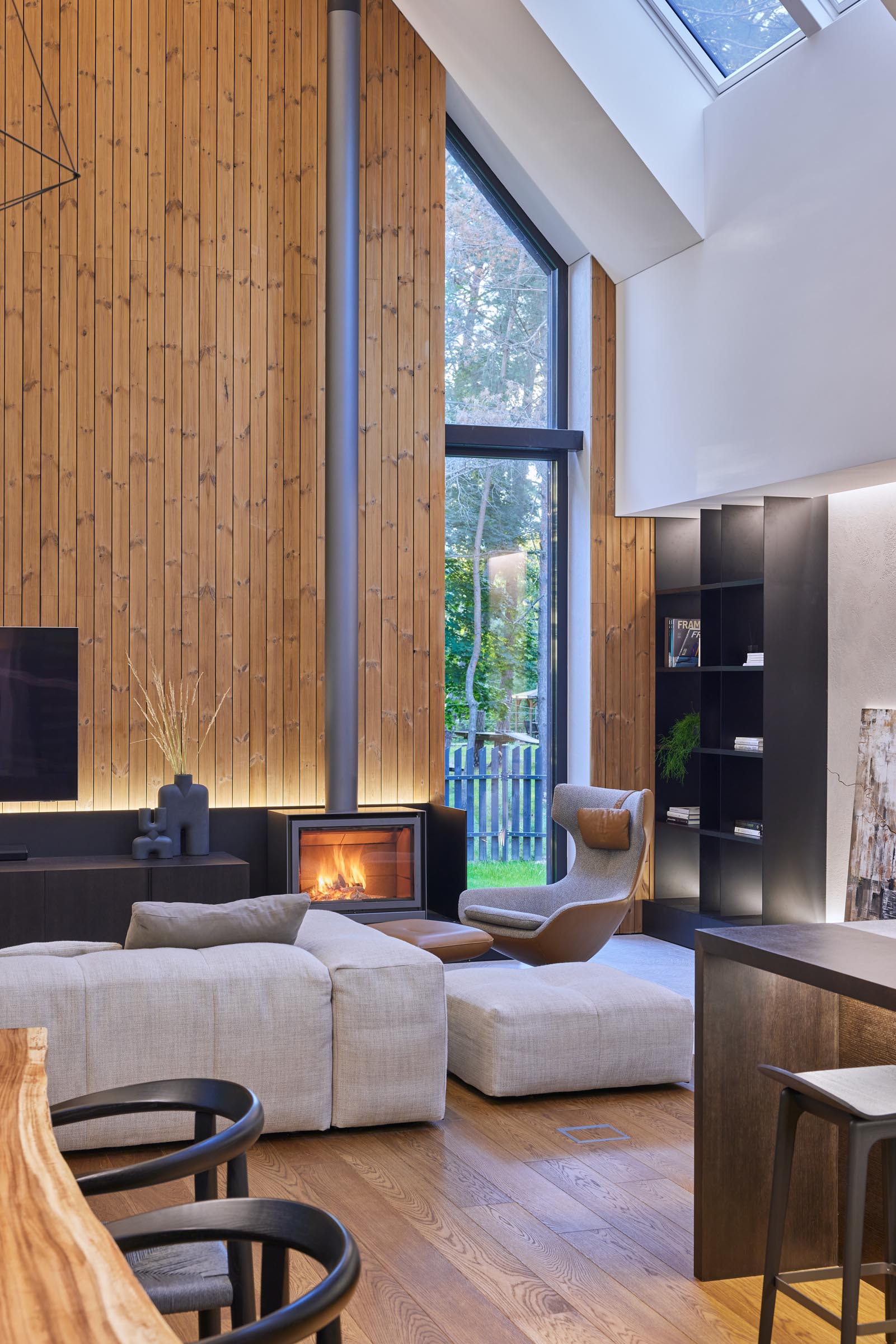 Solidus gyvenamasis namas vaizdingame Pavilnių regioniniame parke svečius pasitinka išskirtiniu erdvės pojūčiu – aukščiausiame svetainės taške lubos siekia daugiau nei 8 metrus. Kuriant gyvenamojo namo interjerą, panaudotos aukščiausios kokybės medžiagos: natūralaus ąžuolo parketlentės, baldai iš natūralaus medžio lukšto, išskirtinio dizaino itališki šviestuvai. Valgomojo akcentas – pietų stalas iš egzotiškos akacijų medienos su lietuvių gamintojų jam pritaikytomis kojomis. Dalis sienų dengtos tekstūrinio marmuro tinku. Siekiant išlaikyti ryšį ir draugystę su namo fasadine architektūra, tiek eksterjere, tiek interjere panaudotos termopušies masyvo lentos.