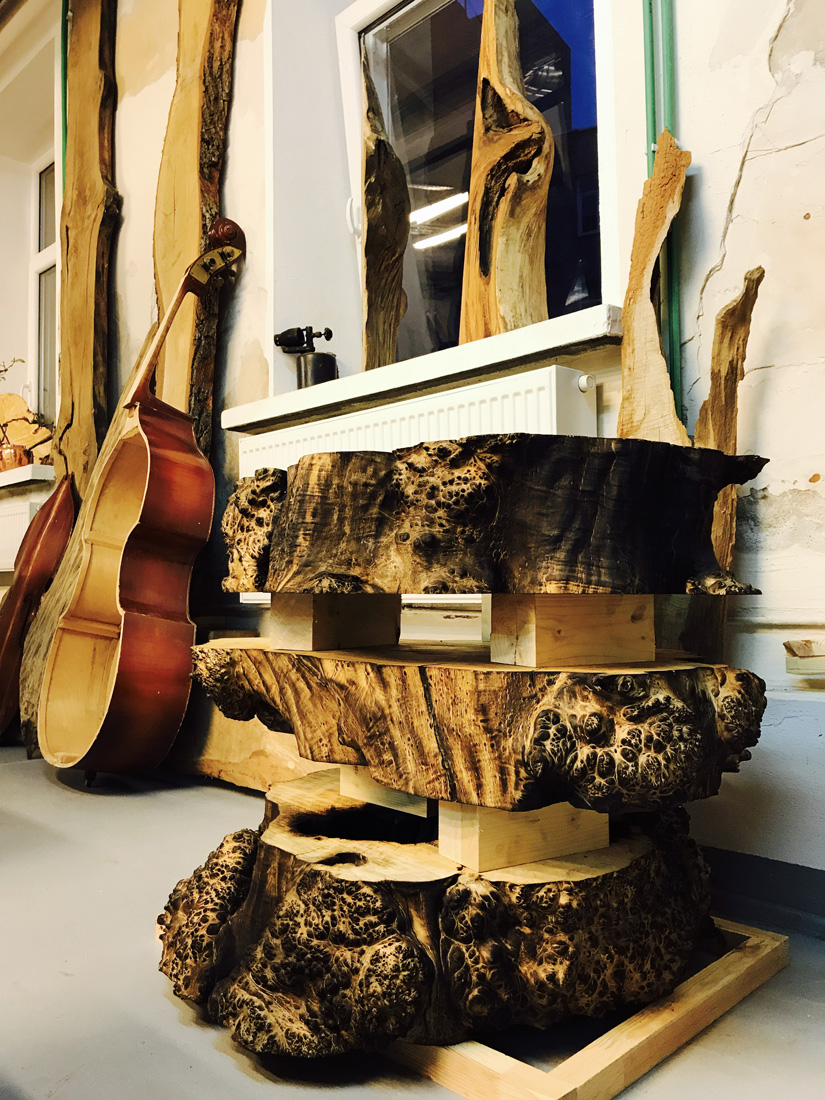 Esu interjero dizaineris, bet neblogai išmanau medžiadirbystės amatą. Tai atėjo iš šeimos: tėtis buvo auksinių rankų žmogus, senelis po karo statė rąstinius namus ir puikiai išmanė savo amatą, buvo gerbiamas rąstinių namų statytojas. Prosenelis gamino bažnytinius medžio dirbinius. Nedrįsčiau savęs vadinti baldžiumi. Esu menininkas, be galo mylintis medį, besistengiantis jį pajusti ir išgirsti. Apie kiekvieną turimą medžio gabalą, kelmą, lentą ar nuopjovą galėčiau papasakoti trumpesnę ar ilgesnę jo atsiradimo studijoje istoriją. Kiekvienas jų yra savaip unikalus ir galintis atskleisti praeities paslaptis. Jas išduoda medyje rasta įstrigusi kulka, šaknyje įaugusi stiklo, senovinė puodelio ar lėkštutes šukė, akmuo ar metalo gabalėlis. Mano tikslas – išsaugoti tą atsineštą medžio energiją, patirtį ir istoriją naujai gimstančiame kūrinyje. Taip jis išlieka gyvas kita forma. Mūsų filosofija – prikelti jį naujam gyvenimui ir leisti gyvuoti skirtingu pavidalu, nepamirštant jo istorijos bei jame sukauptos energijos.