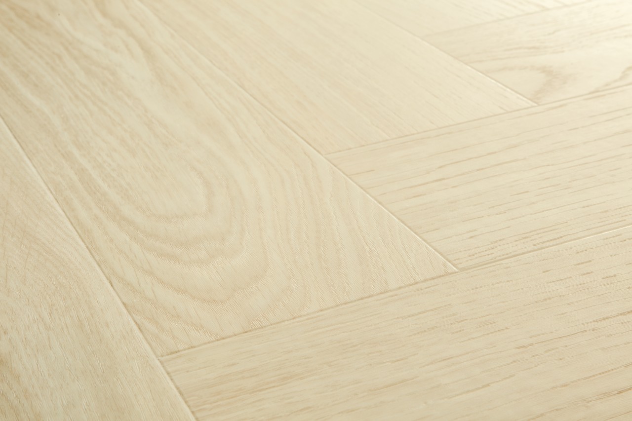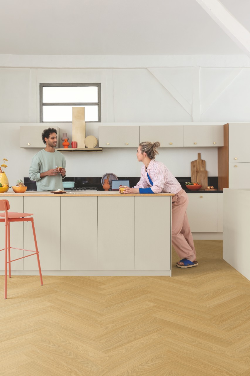Sukurti eglutės raštą? Paprastai jums reikėtų dviejų skirtingų tipų lentų, A ir B, o tai reikštų lėtesnį ir sudėtingesnį montavimą. Tačiau ne su „Alpha Vinyl“. „Quick-Step“ vinilinės grindys iš „Ciro“ kolekcijos turi vieną išradingą lentos tipą, kuris spustelimas abiejose pusėse dėl „Unizip“ sistemos. Netrukus turėsite gražias naujas eglutės rašto grindis!