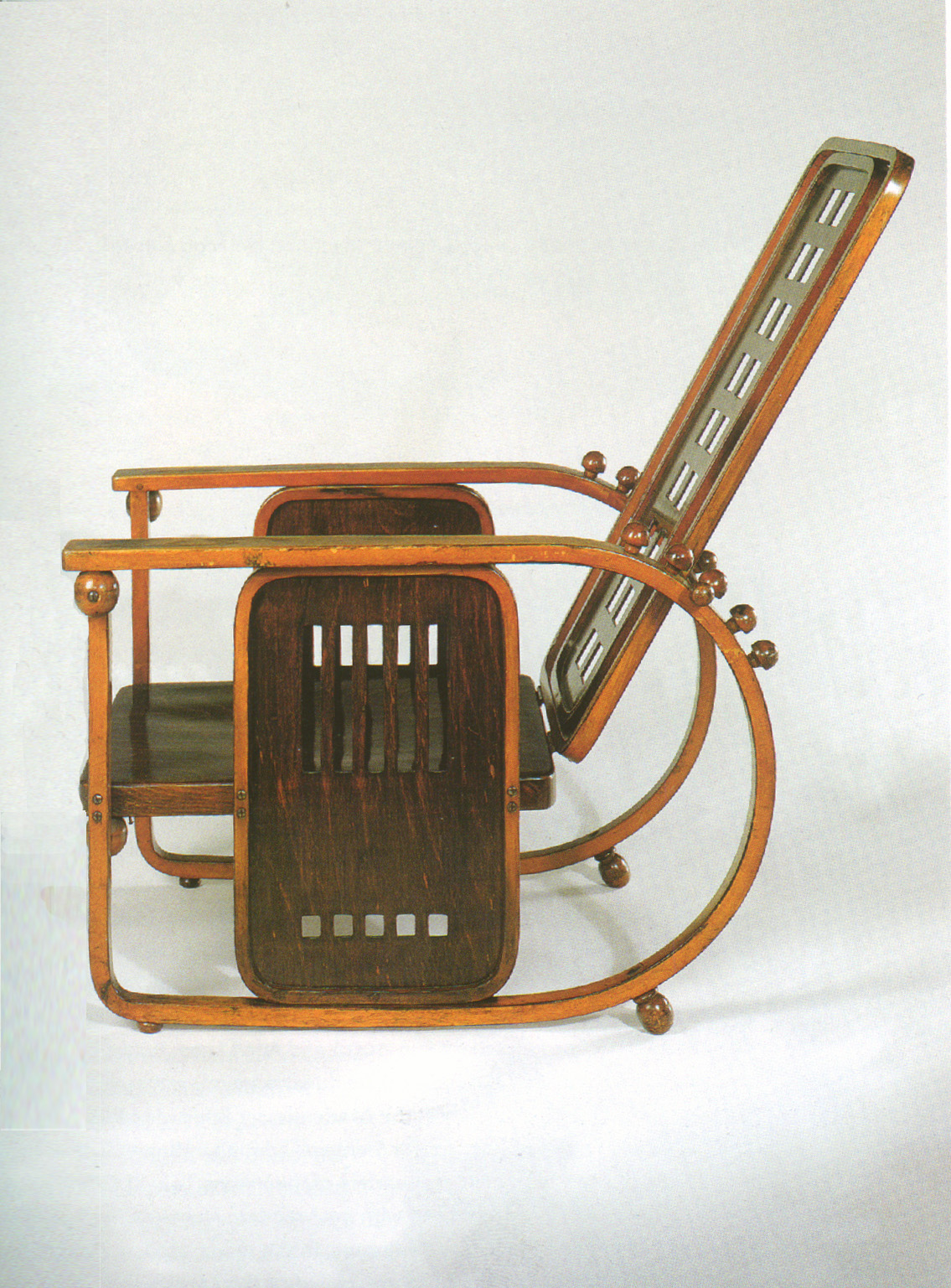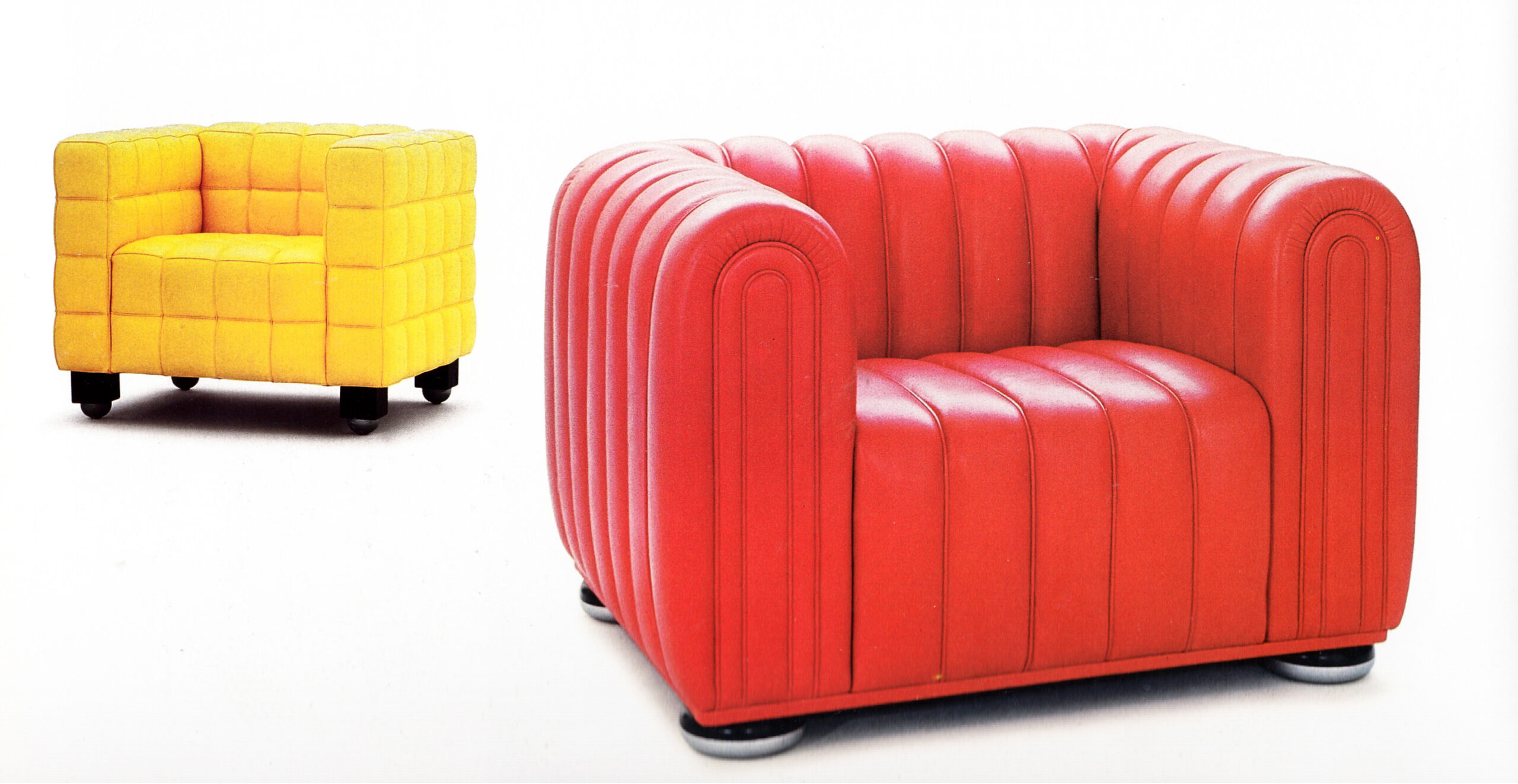 Kairėje: fotelis Sitzmachine, 1908 m. Dešinėje: Stoclet foteliai, 1911 m.