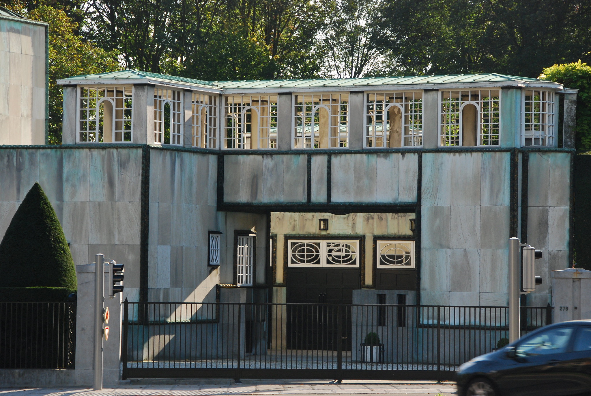 Visgi projektas, išgarsinęs tiek Josefą Hoffmanną, tiek „Wiener Werkstätte“ visame pasaulyje, yra ne Austrijoje, o visai kitoje Europos šalyje – Belgijoje. Austrų architektų invaziją į Briuselio centrą galima laikyti savotišku „kontrpuolimu“, atsakant į aktyvią jau minėto belgų architekto Henry van de Velde’ės kūrybinę bei pedagoginę veiklą Vokietijoje bei Austrijoje. Pastato, kurio projektą užsisakė turtingas bankininkas Adolphas Stoclet, statyba truko net šešerius metus (1905–1911 m.). Užtat jis tapo europinio masto posūkio tašku nuo istorizmo link naujosios funkcionalios architektūros. Iš vienos pusės, jis išlaikė tokius klasikinius miesto rūmų atributus kaip monumentalūs gyvenamieji korpusai, uždara jungiamoji galerija, parko parteris kiemo gilumoje ir vertikalioji bokšto dominantė, papuošta keturiomis bronzinėmis skulptūromis. Iš kitos pusės, išvadavus sienas ir laikančiąsias konstrukcijas nuo dekoro pertekliaus, didžioji estetinio krūvio dalis perleista natūralių medžiagų faktūroms, o monumentalios stačiakampės formos taikomos netgi sodo augalams.