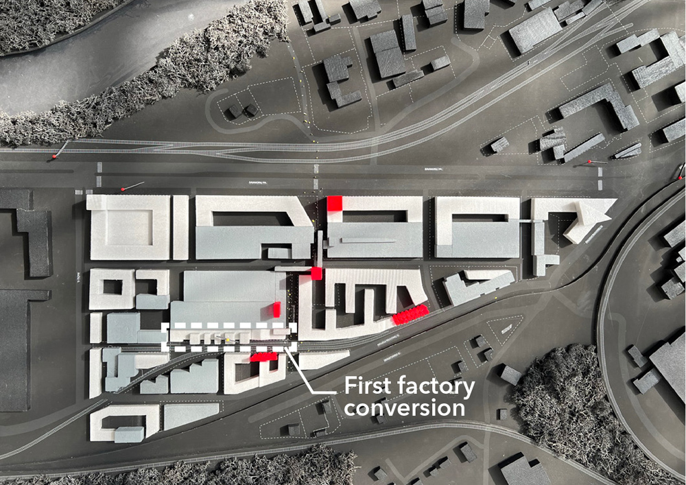 „Betono fabrikas“ – tai pirmoji iniciatyva atkurti visą buvusią ,,Vilniaus namų statybos kombinato“ teritoriją ir išnaudoti visą jos gamtinį, architektūrinį ir infrastruktūrinį potencialą, siekiant paskatinti naują kokybišką, gerai veikiančią ir humanišką urbanistinę struktūrą – „Betono kvartalą“. Istoriškai „Betono fabrikas“ veikė kaip betoninių elementų armatūros skyrius. Jame buvo tik keletas, tačiau šviesių ir erdvių kambarių su dideliais langais ir atvira pastato konstrukcija. Deja, uždarius gamyklą, tikriausiai dėl ekonominių priežasčių, langai buvo sumažinti, o viduje padarytos nereikalingos pertvaros. Taigi, mūsų tikslas projektuojant šį pastatą buvo atkurti tai, kas ten buvo, naudojant šiuolaikinį erdvės, funkcijos ir tvarumo supratimą.