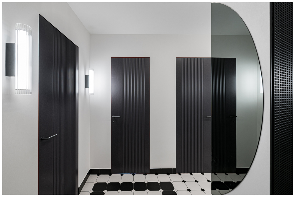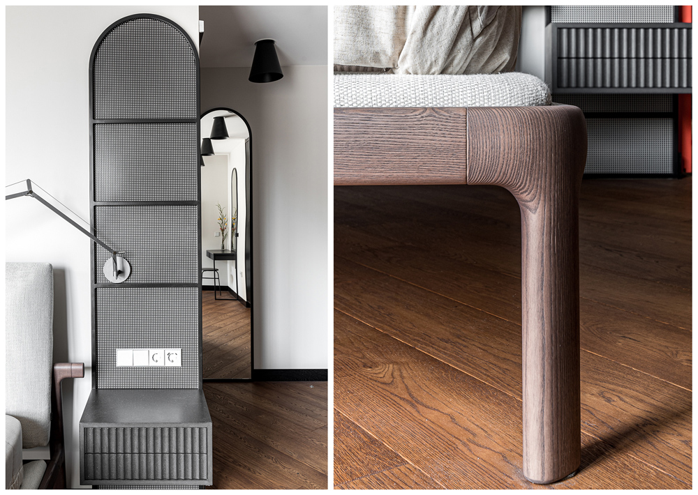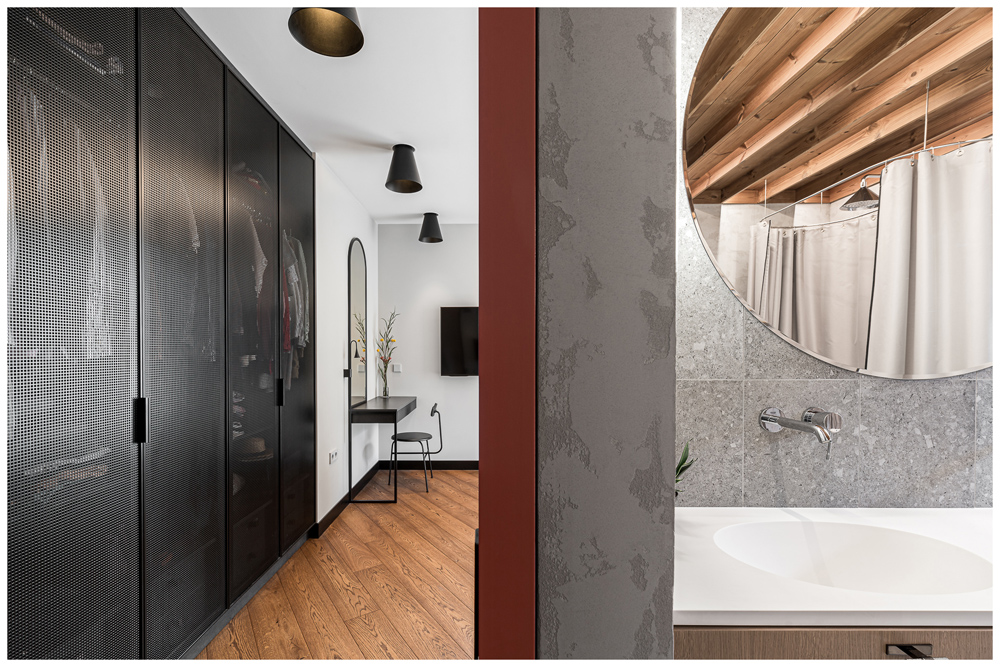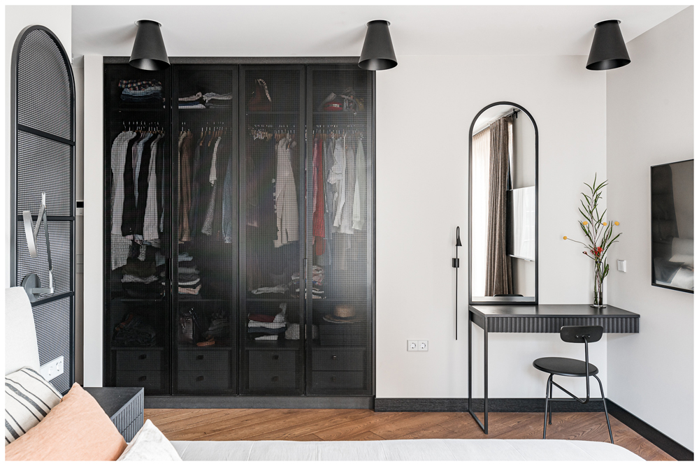 Šie namai išskirtiniai vien dėl to, kad juose gausu interjero detalių: visos namų spintos suprojektuotos su metalinėmis perforuotomis durimis ir suleistos į nišas, tarsi paslėptos sienose, todėl jausmas sukurias toks, kad jų nėra erdvėje.