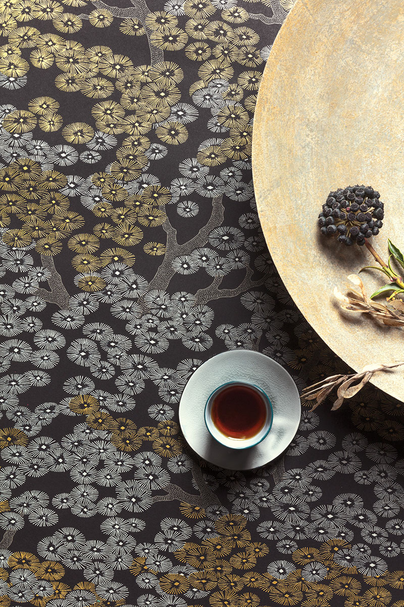Tapetų kolekcija „Kimono“ – tai Japonijos kultūra kupina spalvų ir gyvasties, kurią atspindi ryškūs kraštovaizdžiai ir išskirtinė architektūra. Nuo amžių pražios gamta buvo kertinis Japonijos paveldo akmuo. Vyšnių žydėjimo sezonas – džiaugsmo ir šventimo metas, motinos gamtos atgimimas. Tai grožiu ir nenuspėjamumu pakerintis fenomenas. Gamtos elementai labai glaudžiai susiję su šalies kultūra, o kartu tapo įkvėpimu Kimono kolekcijai.