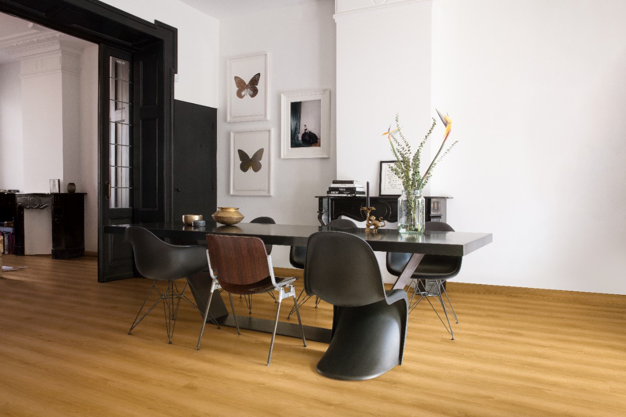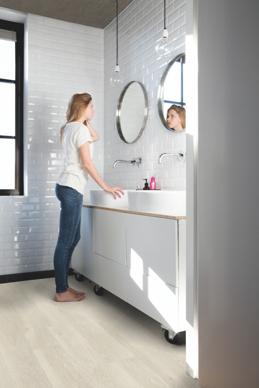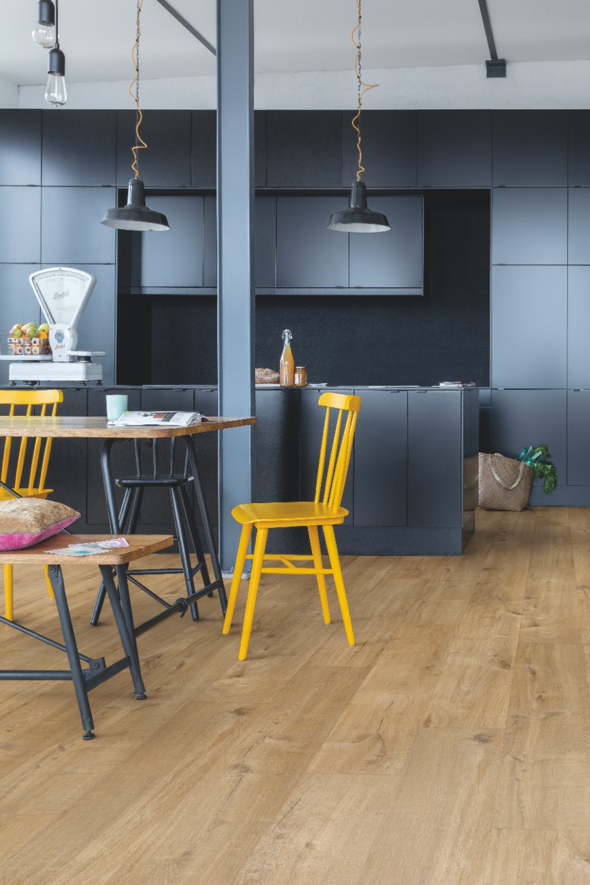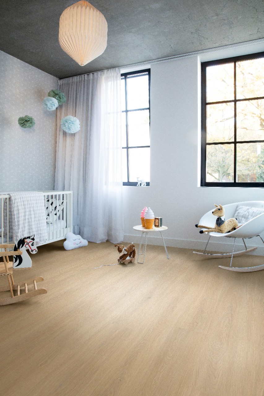 Vinilinės grindys iš „Quick-Step“ Alpha Vinyl Medium Planks Click kolekcijos – atsparios vandeniui plačios vinilinės dangos lentos, įrengiamos suneriant. Tai lentos su grioveliais iš visų 4 lentos pusių, kurie sukuria erdvės perspektyvą ir paryškina autentišką lentų vaizdą. Itin natūraliai atrodančios, natūralų medį primenančios grindys, išsiskiriančios tikro medžio pojūčiu vaikštant. Vinilinėmis grindimis galėsite mėgautis daug metų, nes užsandarintas jų viršutinis sluoksnis pagamintas taikant technologiją „Stain and Scratch Guard“. Šis sluoksnis garantuoja geresnę apsaugą nuo įbrėžimų, dėmių, nešvarumų ir nutrynimo.