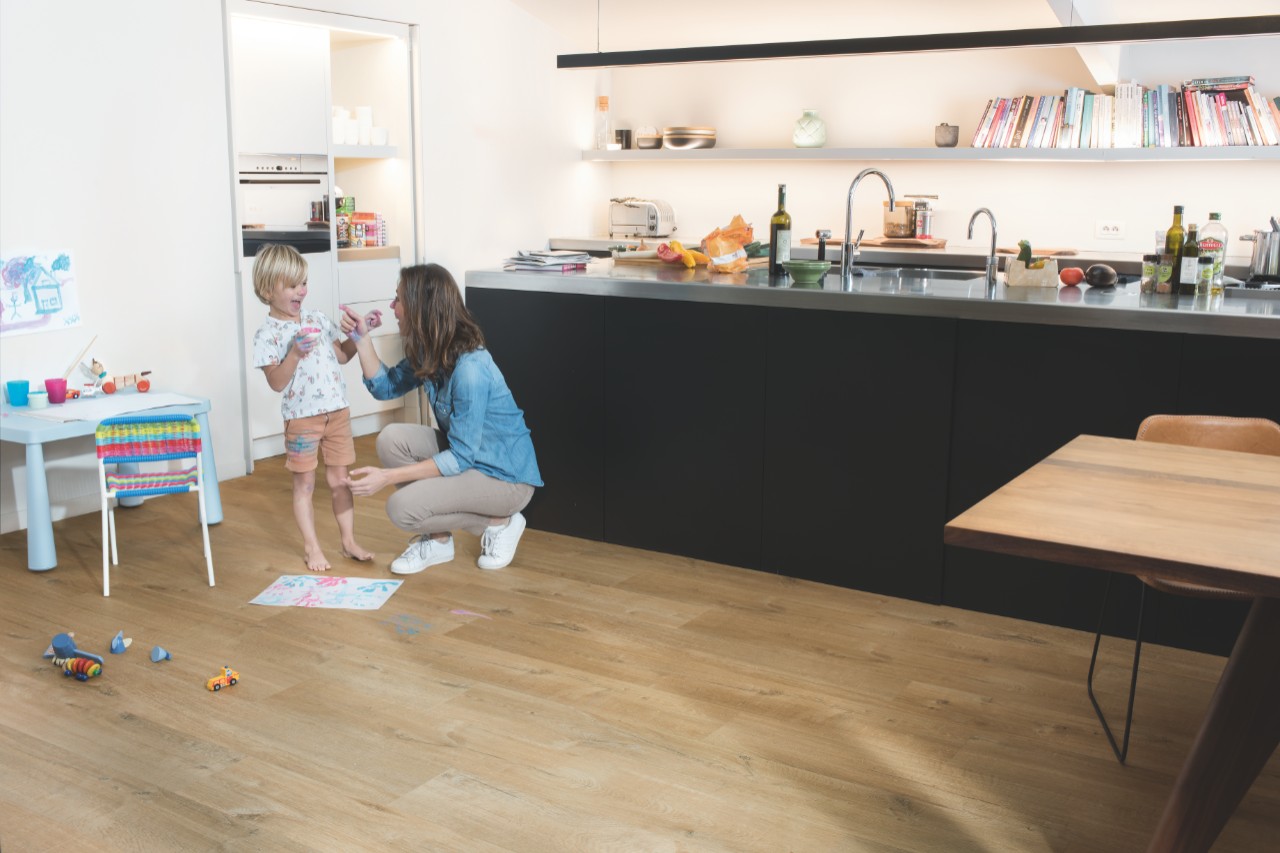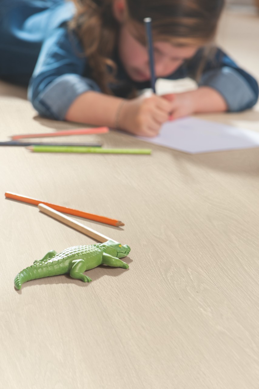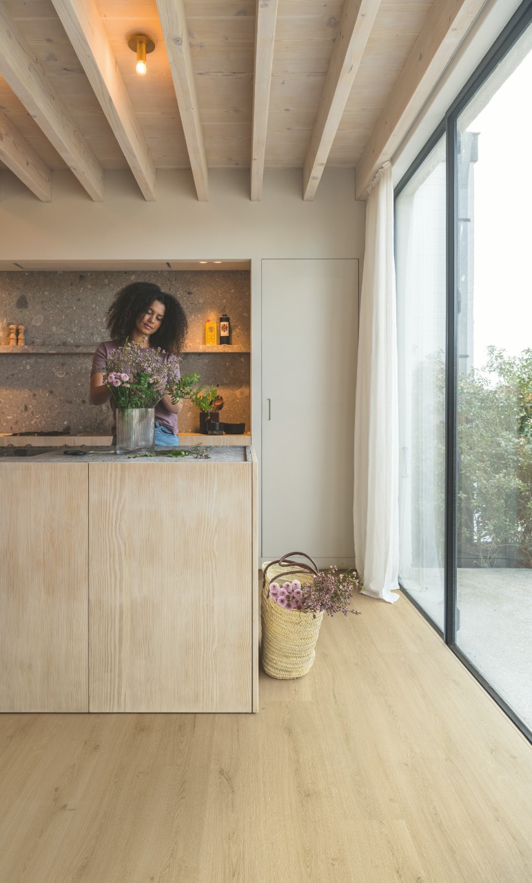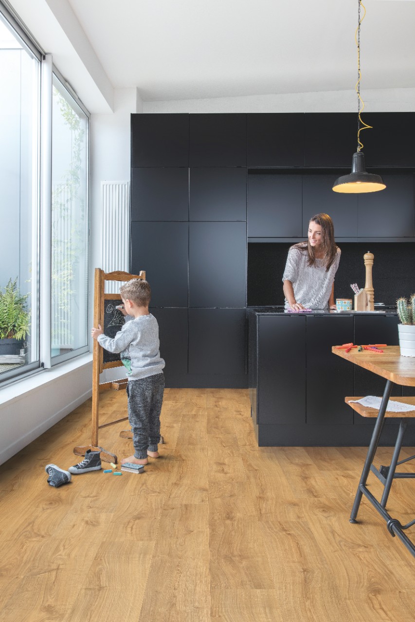 Vinilinės grindys iš „Quick-Step“ Alpha Vinyl Medium Planks Click kolekcijos – atsparios vandeniui plačios vinilinės dangos lentos, įrengiamos suneriant. Tai lentos su grioveliais iš visų 4 lentos pusių, kurie sukuria erdvės perspektyvą ir paryškina autentišką lentų vaizdą. Itin natūraliai atrodančios, natūralų medį primenančios grindys, išsiskiriančios tikro medžio pojūčiu vaikštant. Vinilinėmis grindimis galėsite mėgautis daug metų, nes užsandarintas jų viršutinis sluoksnis pagamintas taikant technologiją „Stain and Scratch Guard“. Šis sluoksnis garantuoja geresnę apsaugą nuo įbrėžimų, dėmių, nešvarumų ir nutrynimo.