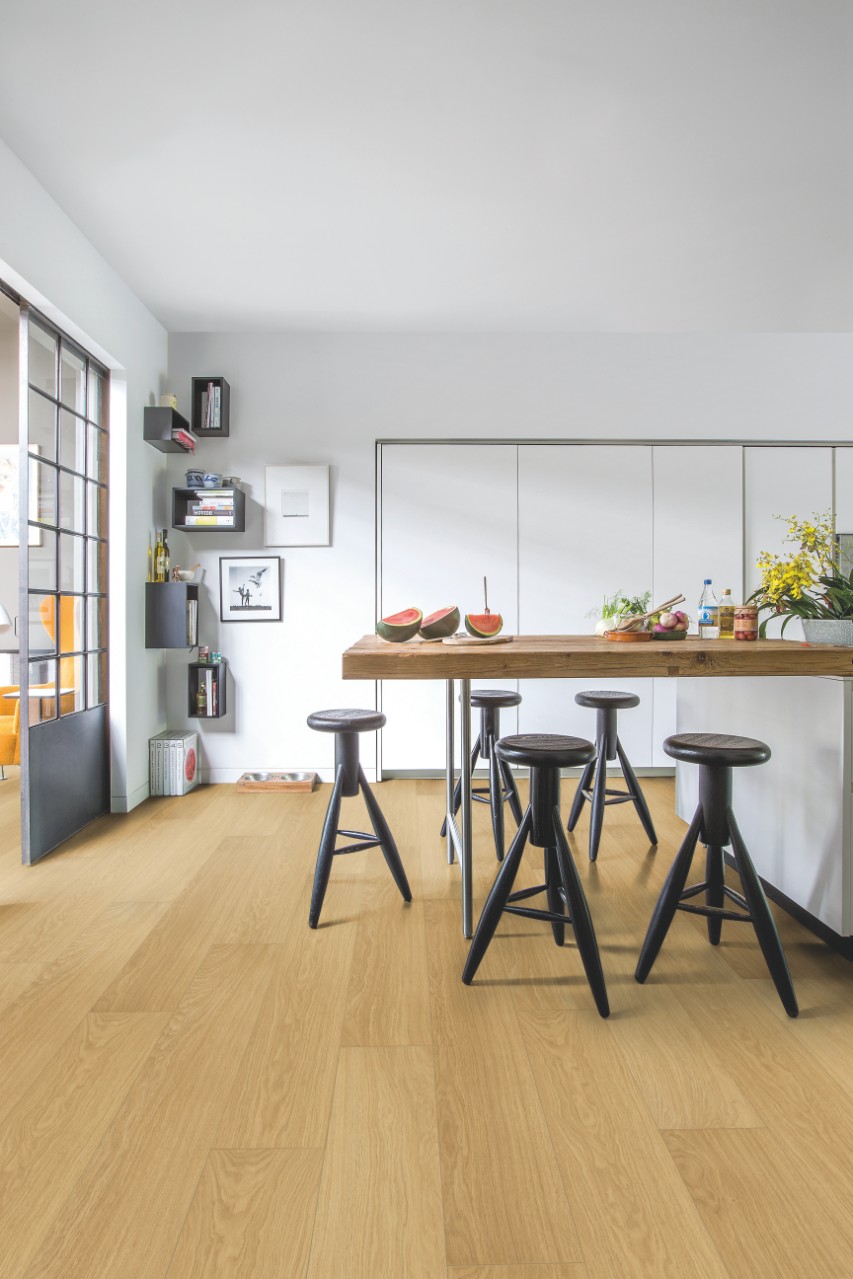 Laminatas atsparus vandeniui (drėgmei) iš Quick-Step Impressive kolekcijos – išsiskiriančios vandenį atstumiančiu Hydroseal paviršiaus padengimu. Impressive HydroSeal kolekcijos grindys pasižymi įspūdinga išvaizda ir pojūčiu: išskirtinis natūralumas ir ypatingas atsparumas. Grindų paviršius padengtas apsauginiu „Scratch Guard“ sluoksniu, užtikrinančiu išskirtinį atsparumą įbrėžimams, o lentelių paviršiaus ir jų griovelių struktūra visiškai atitinka medienos rašto imitaciją.