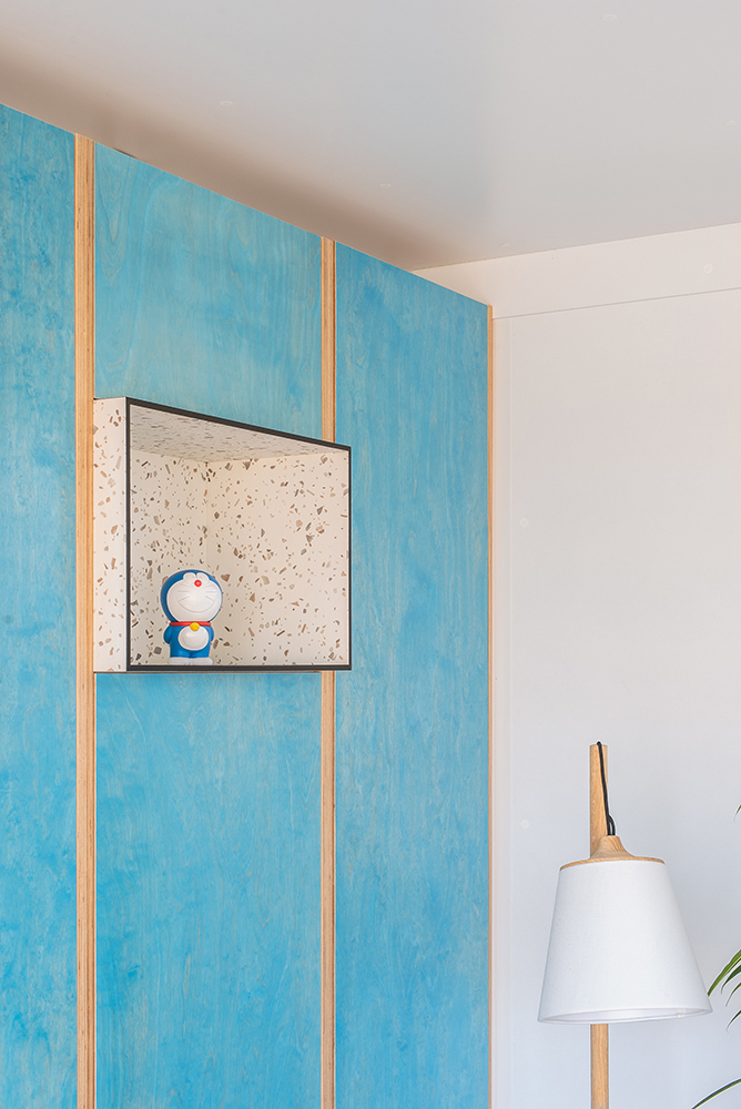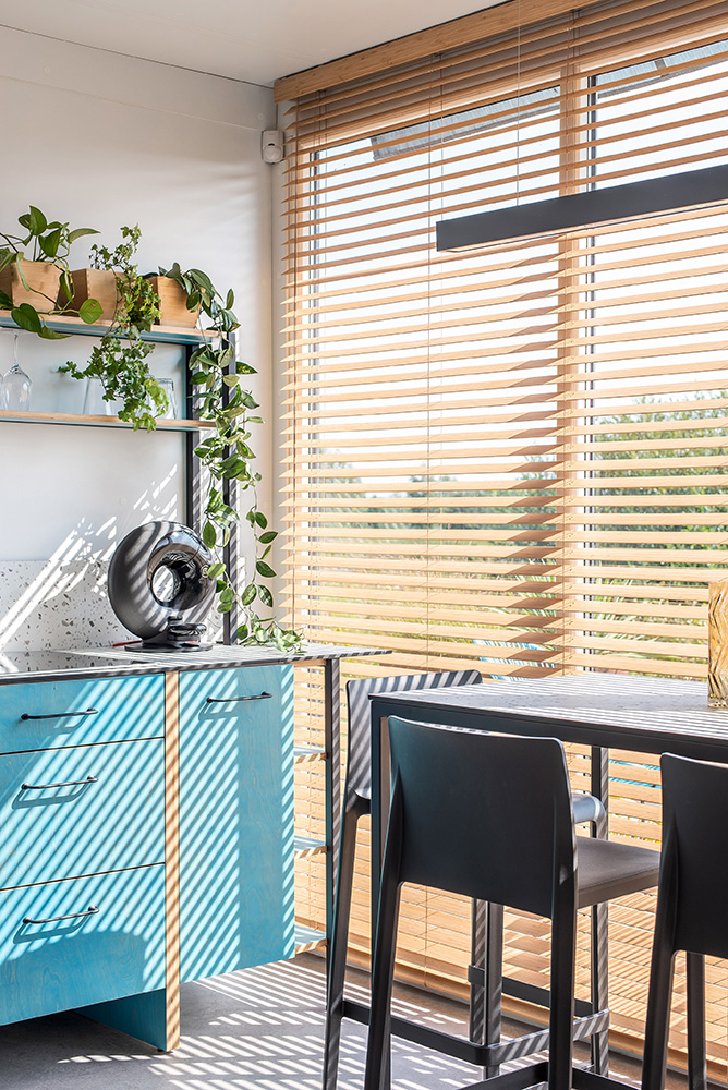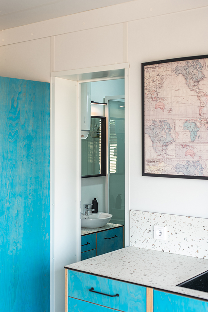 Interjeras dalyvauja „Metų interjeras / Auksinė paletė ’21“ konkurse. Šiame namelyje, kuris kurtas kaip vandens sporto postas, intuityviai norėjosi vaiskių, paplūdimį primenančių spalvų. Akcentinei mėlynai antrina natūralaus medžio, ochros spalvos, jas styguoja juodos spalvos detalės, ir visa tai išryškėja baltame bei pilkame fone.